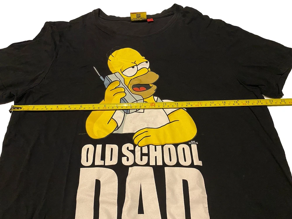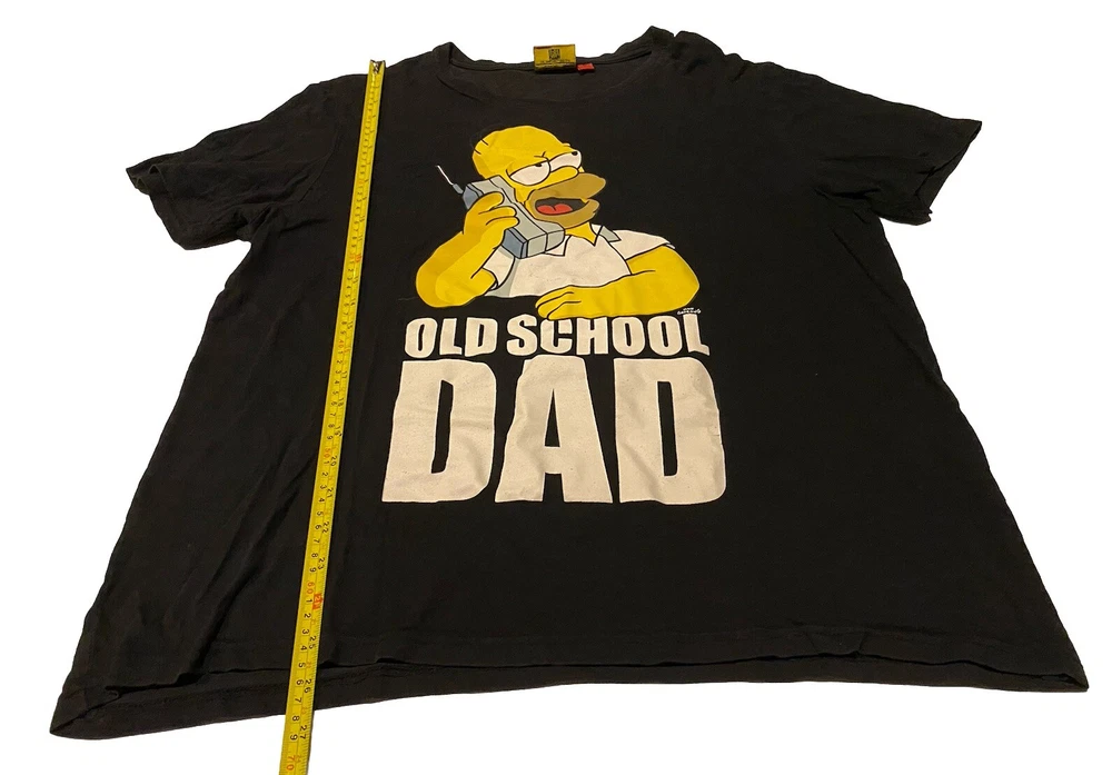 The Simpsons Homer Simpson Dad Tee features a classic graphic print of the iconic character, perfect for fans of the popular animated series. Made from a comfortable blend of polyester and cotton, this black t-shirt with short sleeves and a round neck offers a regular fit in size L. Easy to care for with machine washable instructions, it is suitable for all seasons and showcases the beloved character in a nostalgic and stylish design. Ideal for any Simpsons enthusiast looking for a cool and casual addition to their wardrobe. In good condition. Please refer to pics for further details. Thank you for shopping at Funkee Munkee New & Rescued Treasures.