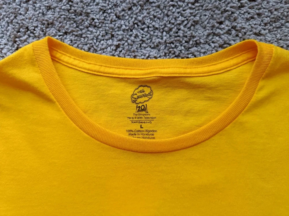 The Simpsons T-Shirt Men's Size Large Double Graphic Yellow Short Sleeve -Preowned In Amazing Condition No Rips Or Stains -Pit To Pit (20 inches) -Length. (31 inches)
