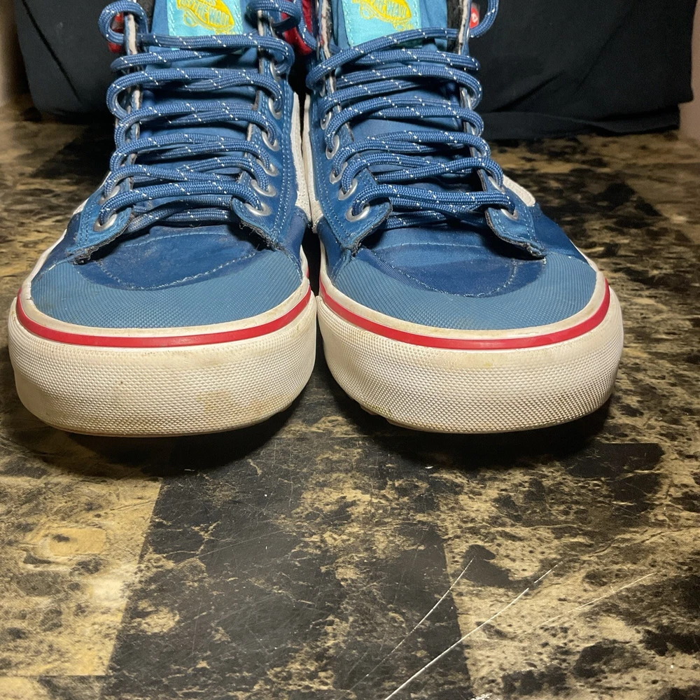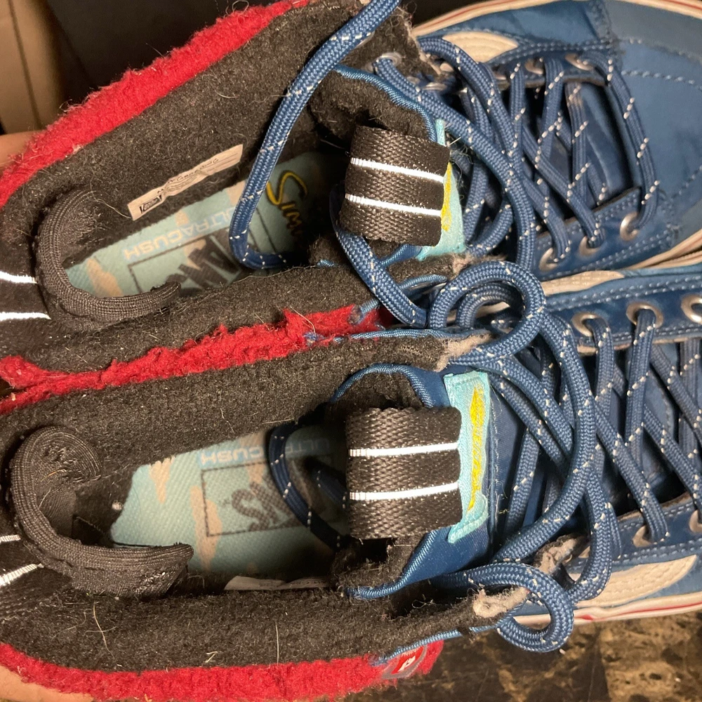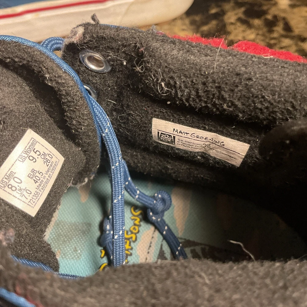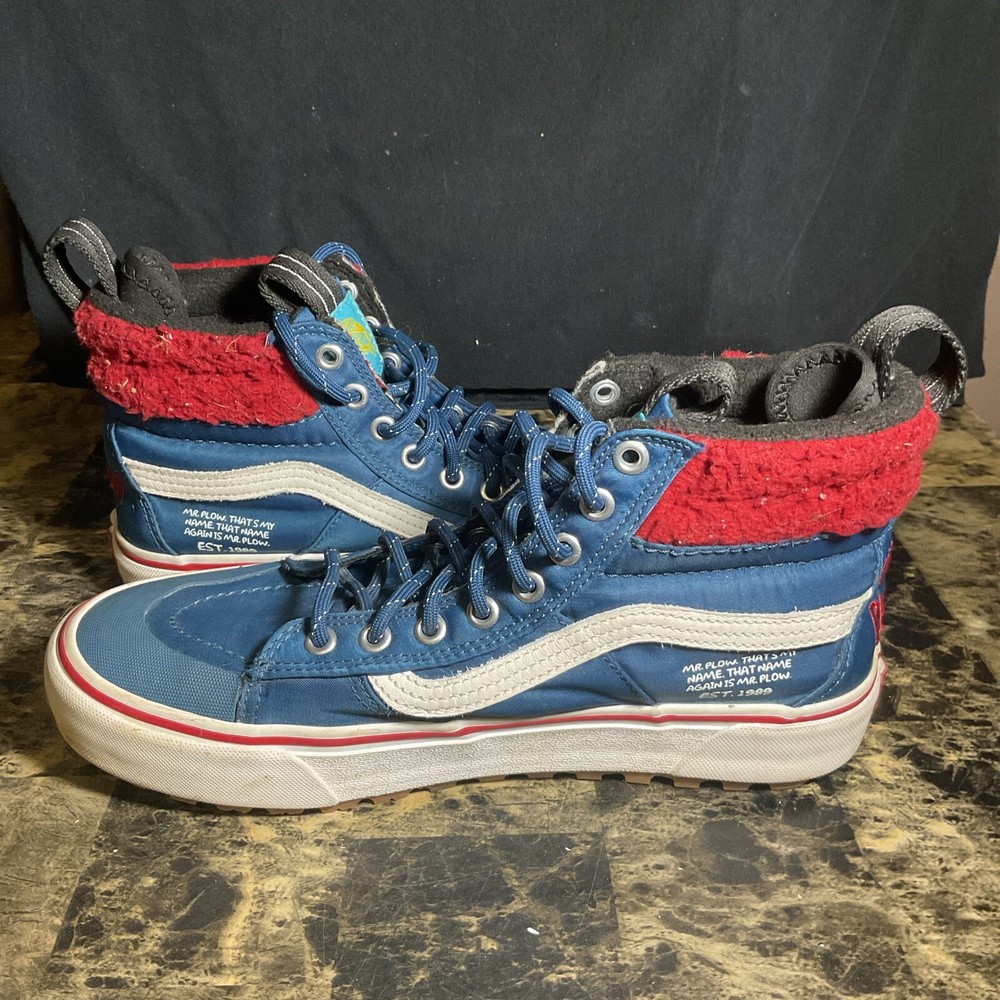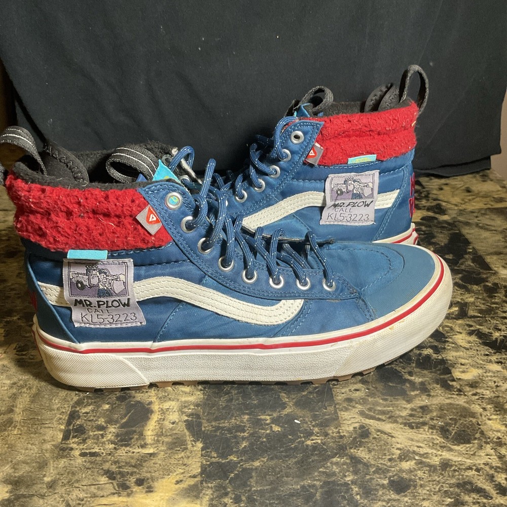 Elevate your sneaker game with The Simpsons X Vans Plow Sk8-Hi MTE 2.0 DX Shoe. This unisex athletic shoe features a high top shoe shaft style with a blue colorblock pattern and lace-up closure. The shoe is designed with a cushioned, limited edition, comfort, breathable, insulated, and water-resistant features, making it perfect for any occasion. This sneaker is a must-have for any fan of The Simpsons and Vans. It comes in a standard shoe width, with UK Shoe Size 9.5 and US Shoe Size 8. The shoe is perfect for those who love cartoon, TV & movie characters, festival, art, letters, numbers & words, colorful, athleisure, retro, logo, preppy, celebrity, signs & symbols, 90s, and sports-themed shoes. Get your hands on this unique sneaker today!