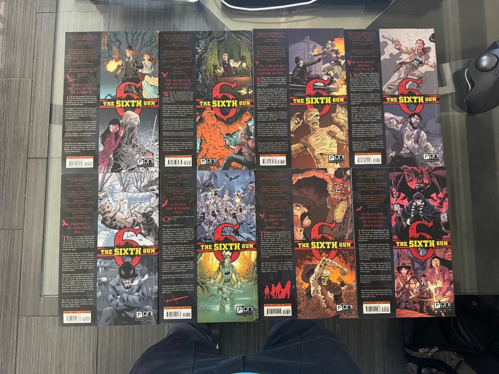 The Sixth Gun TPB Vol. 1-8 is a collection of graphic novels by artist/writer Cullen Bunn, published by Oni Press. Set in the Modern Age era, the series combines elements of action, adventure, horror, and sci-fi in a color English-language format. Each volume is presented in softcover format, making it a convenient and visually appealing addition to any comic book collection. With a focus on US Comics tradition, this series is sure to captivate readers with its gripping storyline and engaging artwork.