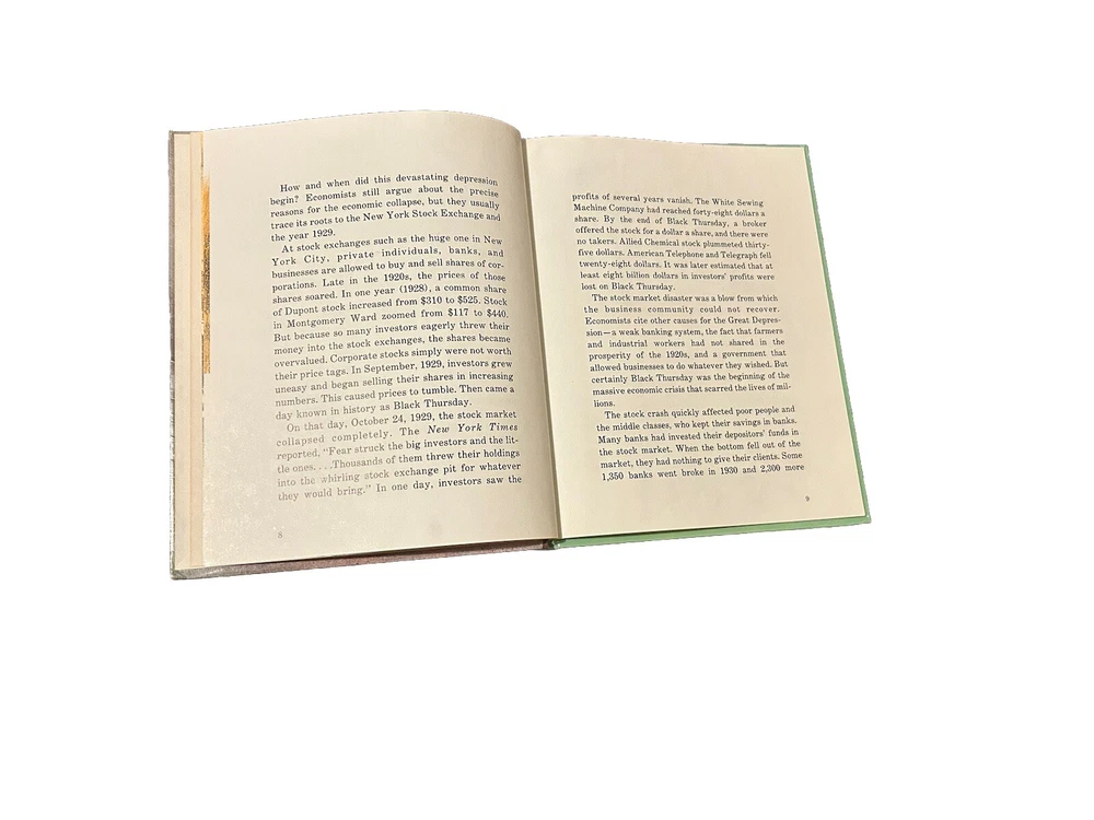 Discover the fascinating story of the Great Depression with this 1985 edition of "The Story of The Great Depression" by R. Conrad Stein. This picture book, part of the Cornerstones of Freedom Ser., provides a comprehensive and engaging narrative of the American economy's downfall in the 1980s. With 32 pages of illustrated content, this library binding book is perfect for ages 4-12 and is a must-have for any history enthusiast. The book features an ex-library copy with no personalization and is published by Scholastic Library Publishing. Get your hands on this valuable resource today!