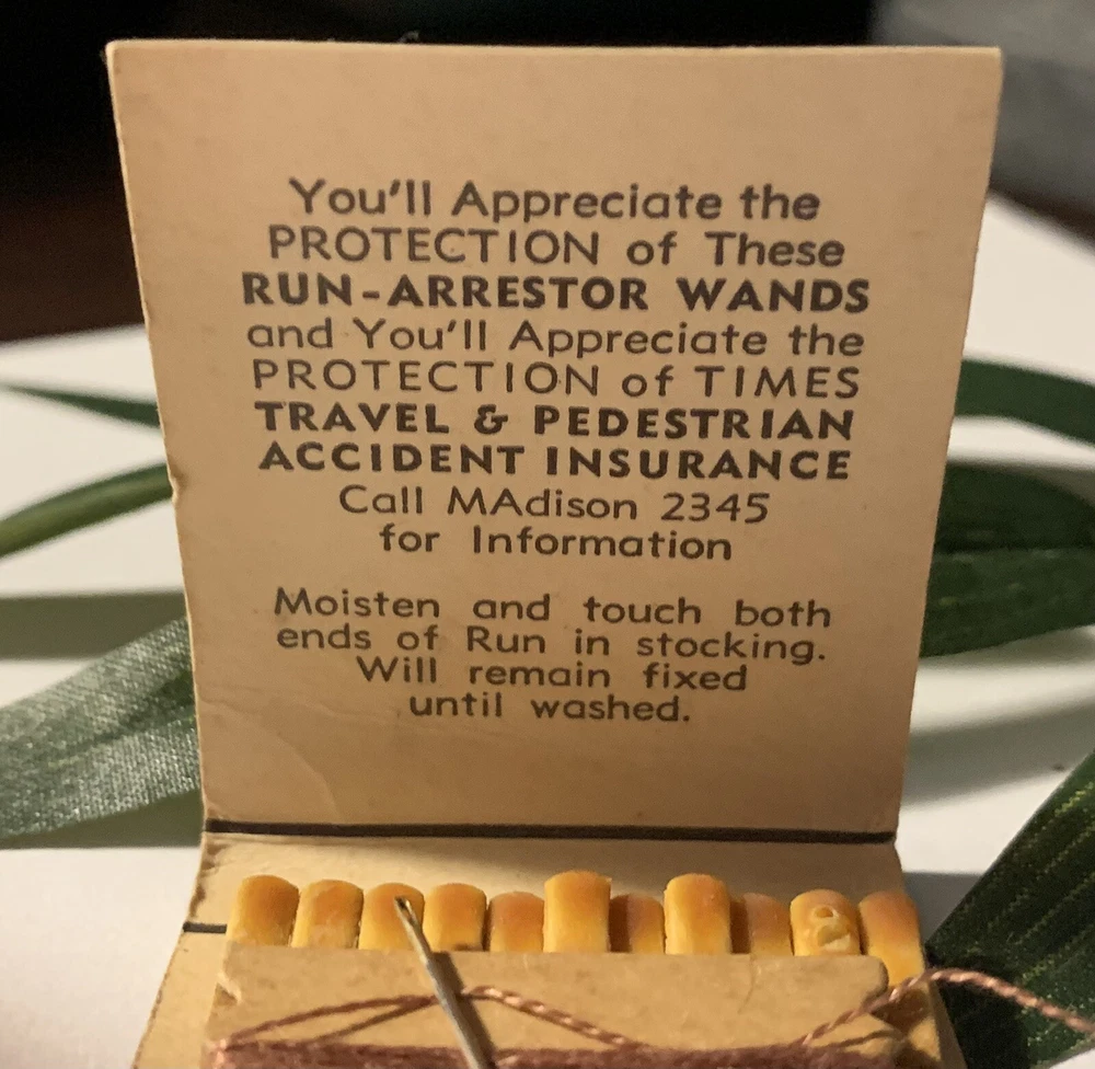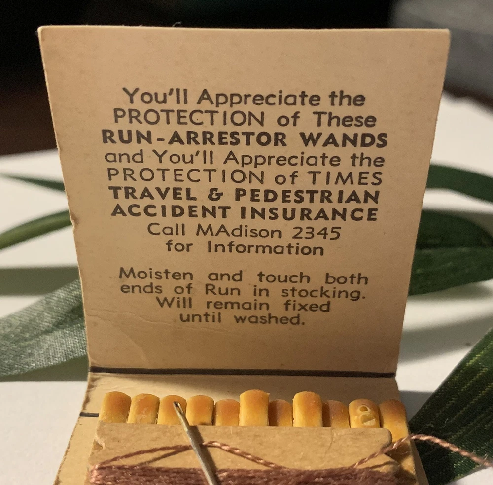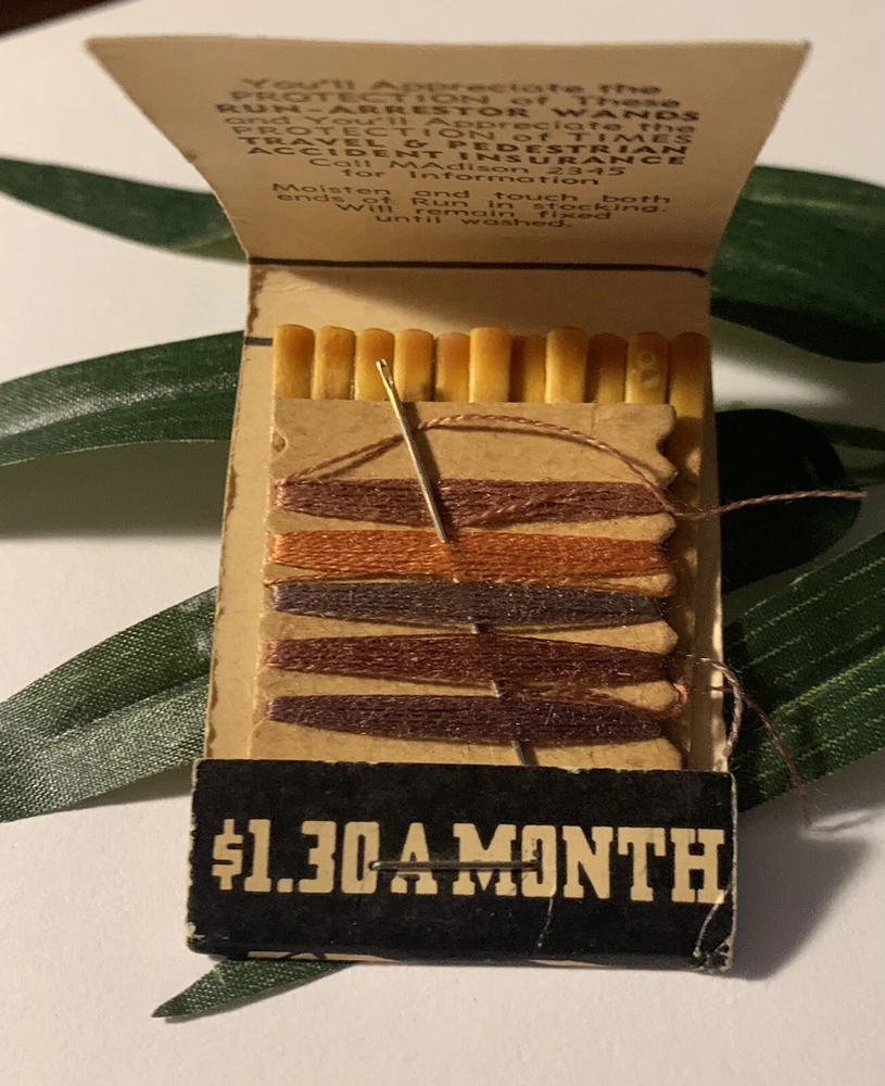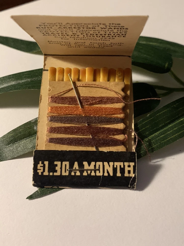 Hard to Find ~ Unique Vintage Newspaper / Magazine Subscription / Insurance HTF Advertising Matchbook Sewing Kit + Run Arrestor Wand ~