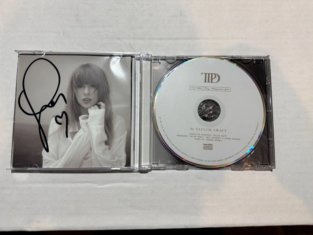 This special edition CD features the renowned artist Taylor Swift and includes a hand-signed photo with a heart ❤️ . The album is titled "The Tortured Poets Departments" and was released in 2024 under the record label Republic Records. The case is a standard jewel case and the CD format is mint (M). The album includes pop rock songs with Taylor Swift's voice as the main instrument. The multicolor songs are in English and were written in the 2020s. This item is perfect for fans of Taylor Swift and collectors of special edition CDs. See photos for condition of auto paper All sales final no refunds no returns 2