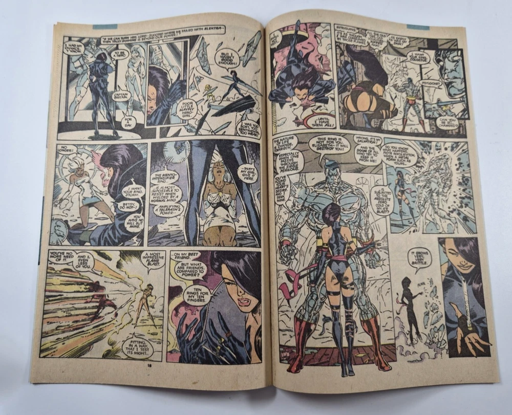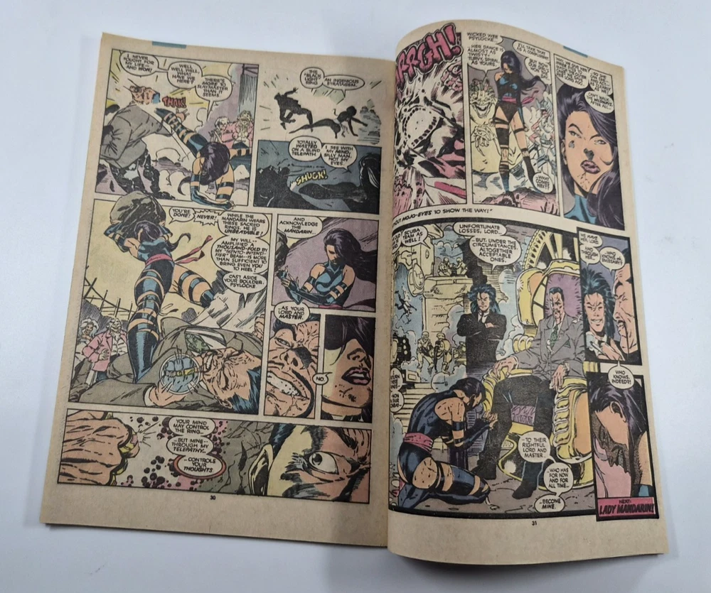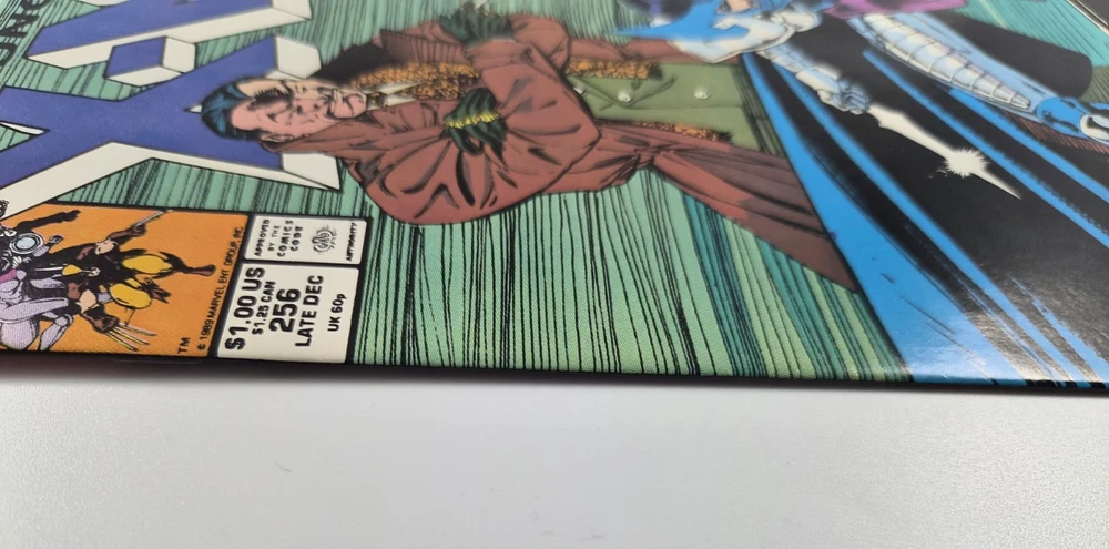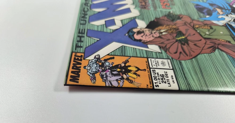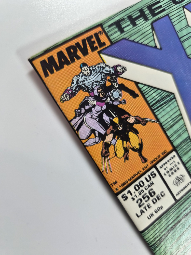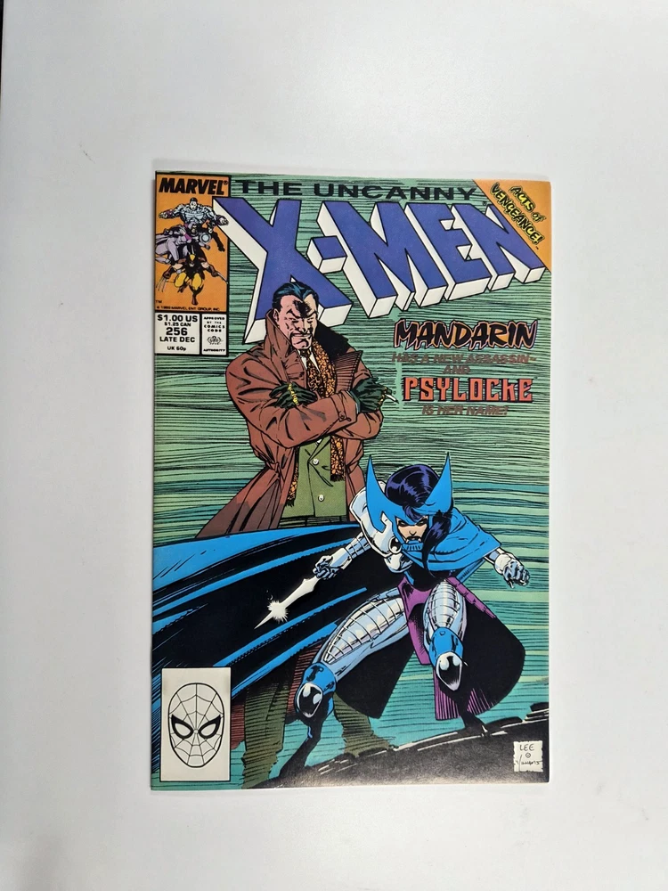 The product is a vintage single issue comic book titled "The Uncanny X-Men #256" from 1989, featuring the 1st appearance of the character Psylocke in stunning artwork by Jim Lee. This US comic from Marvel Comics showcases the iconic X-Men superhero team, with a colorful style and boarded features. The comic, written by Chris Claremont and illustrated by Jim Lee, is a valuable addition to any collector's library, especially for fans of the Marvel Universe and superhero genres.
