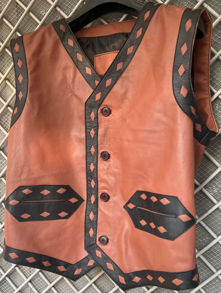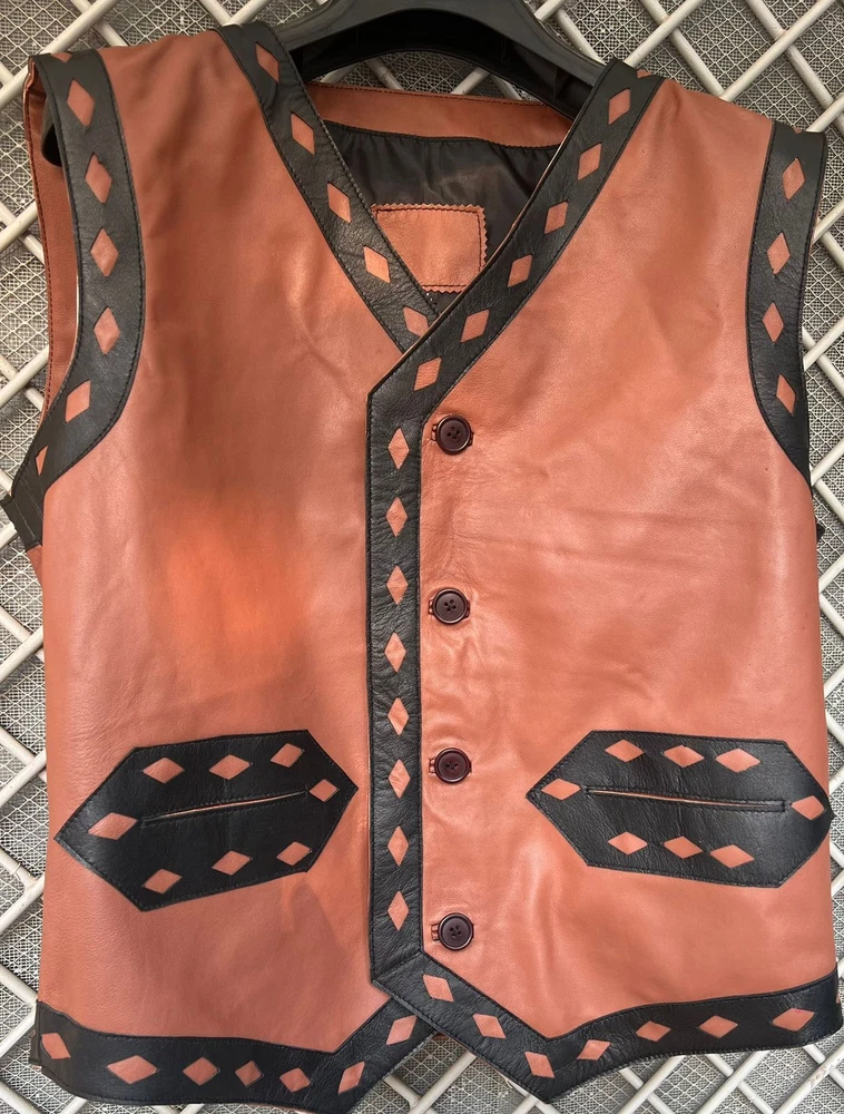 THE WARRIORS MOVIE LEATHER VEST Material: Real Leather Lining: Viscose Lining Closure: Button Closure Neck: V Shape Neck Style Pockets: Two Outside and Two Inside Pockets Color: Brown/ Maroon Vest is available in High quality Real Leather Please buy with full confidence, we assure you of providing the best quality item. Shipping Policy Shipping within 7 to 10 working days. Tracking number will be provided after shipment. RETURN AND REFUNDS Returns are accepted, but we hold the right to accept or decline the return requests. We are not responsible for any sizing issues or any sizing related returns because size dispatched to buyers are as per their own selection and if sizing issues occurs we can only accept exchange. Our QC checks each and every item thoroughly before shipping it out to the customer so it is rarely possible that you may found any issue other then sizing. Therefore we suggest our customer to choose at-least 4-6 inches larger jacket chest with respect to their own chest size. We believe in creating long lasting relations with our customers and thus returns may be accepted within 14 days of receiving item in genuine cases. After receiving the order, the buyer can cancel the purchase/transaction within: 2 days of placing the order. Return postage will be paid by: Buyer Returns/Exchanges are accepted within 14 working days of receiving the item in genuine condition. Custom orders are not at all accepted for returns. Postage & packaging charges are not refundable in any circumstances, the cost of return and postage charges of second jacket in case of exchange would be paid by buyer, therefore please select your size by reading our size charts carefully to avoid later issues. In all above cases return shipment and replacement jacket shipment would be paid by buyer. As per our exchange process, it is recommended that the buyer should repurchase the correct size again from us so that jacket processed accordingly, and return the jacket to our return address.On receiving the return, we will issue the refund for the Jacket price. The goods must be returned in their original packaging and in unused condition. In-case of item refund, only item price would be refunded excluding actual shipping cost If you have any questions regarding policies or sizing please contact us.