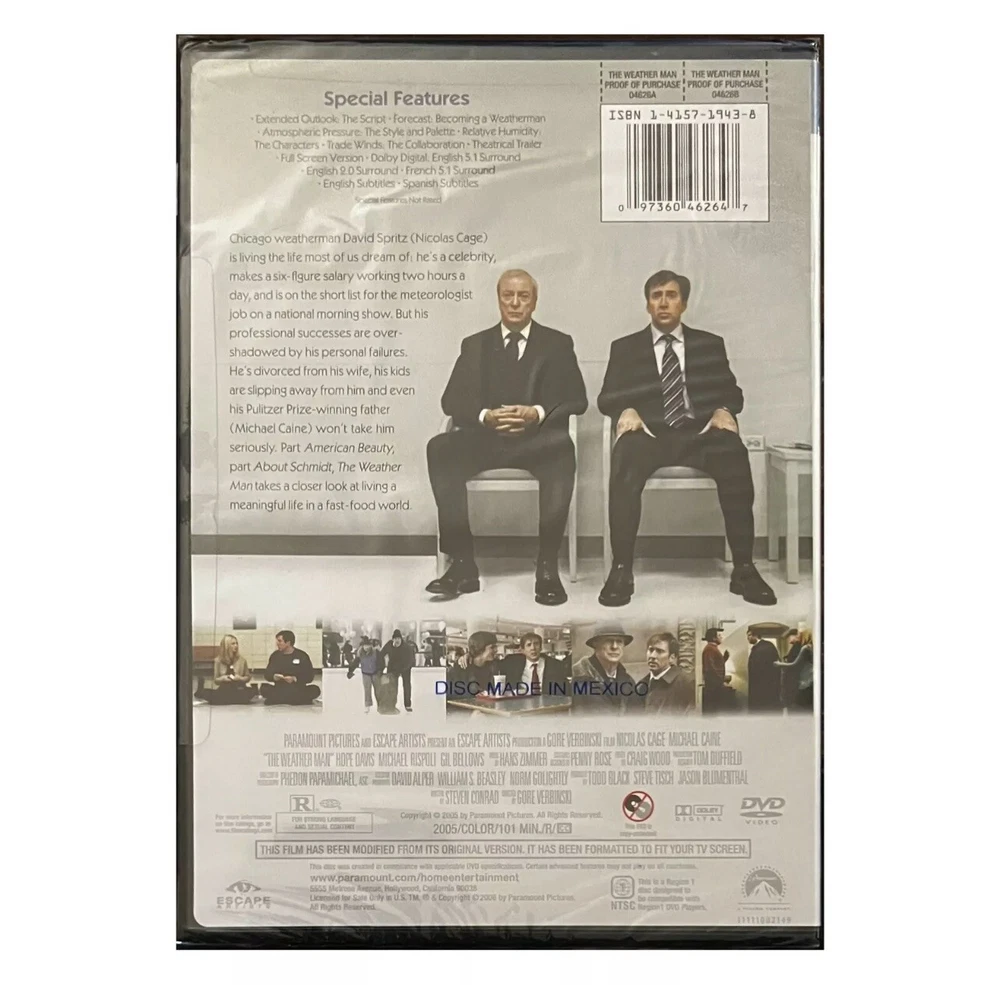 The Weather Man DVD - The Weather Man Movie - Nicolas Cage - NEW SEALED Format: DVD: Digital Video Disc Title: The Weather Man Special Features: Full Screen Edition Extended Outlook Theatrical Trailer Dolby Digital Sound Condition: Item is NEW & in original sealed packaging (see photos). Stored in sealed packaging in a 100% smoke free home. Photos accurately represent the condition of the item. Please review all photos thoroughly. Many thanks! Questions: Feel free to contact us through eBay if you have any questions concerning the item(s) listed. We are very easy to work with and pride ourselves on providing excellent customer service.