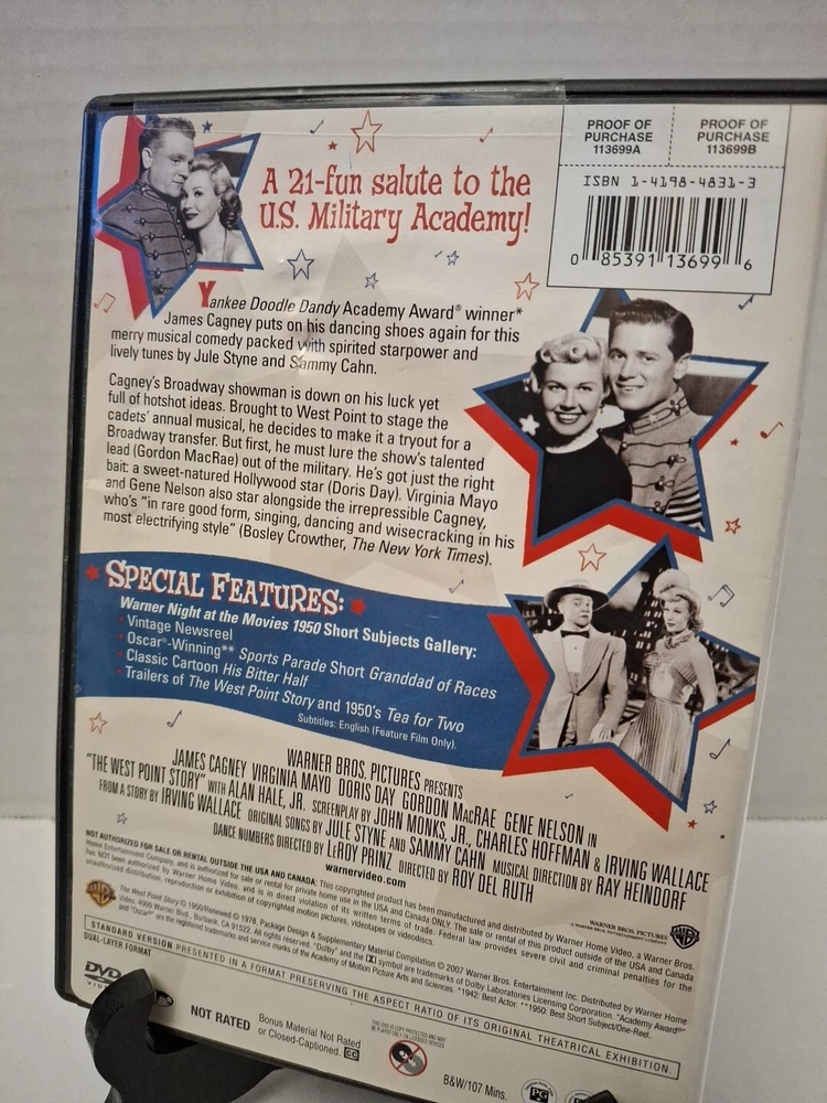 Release Year:1950Sub-Genre:Comedy Videogtin13:0888574475024Aspect Ratio:1.37:1Rating:GFormat:DVDSubtitle Language:EnglishGenre:MusicalMovie/TV Title:The West Point StoryUPC:0888574475024Studio:Warner ArchivesDirector:Roy Del RuthType:MovieActor:James CagneyRun Time:107 min.Language:English