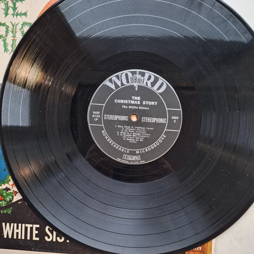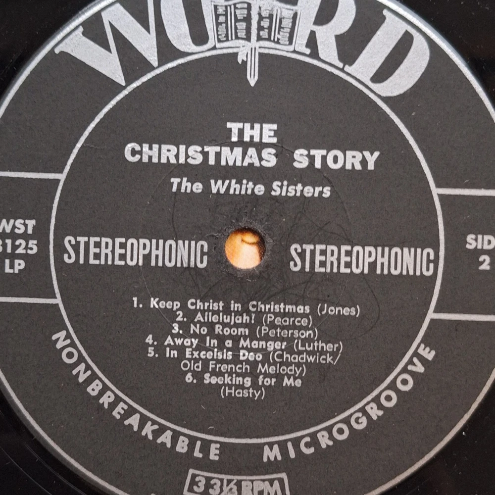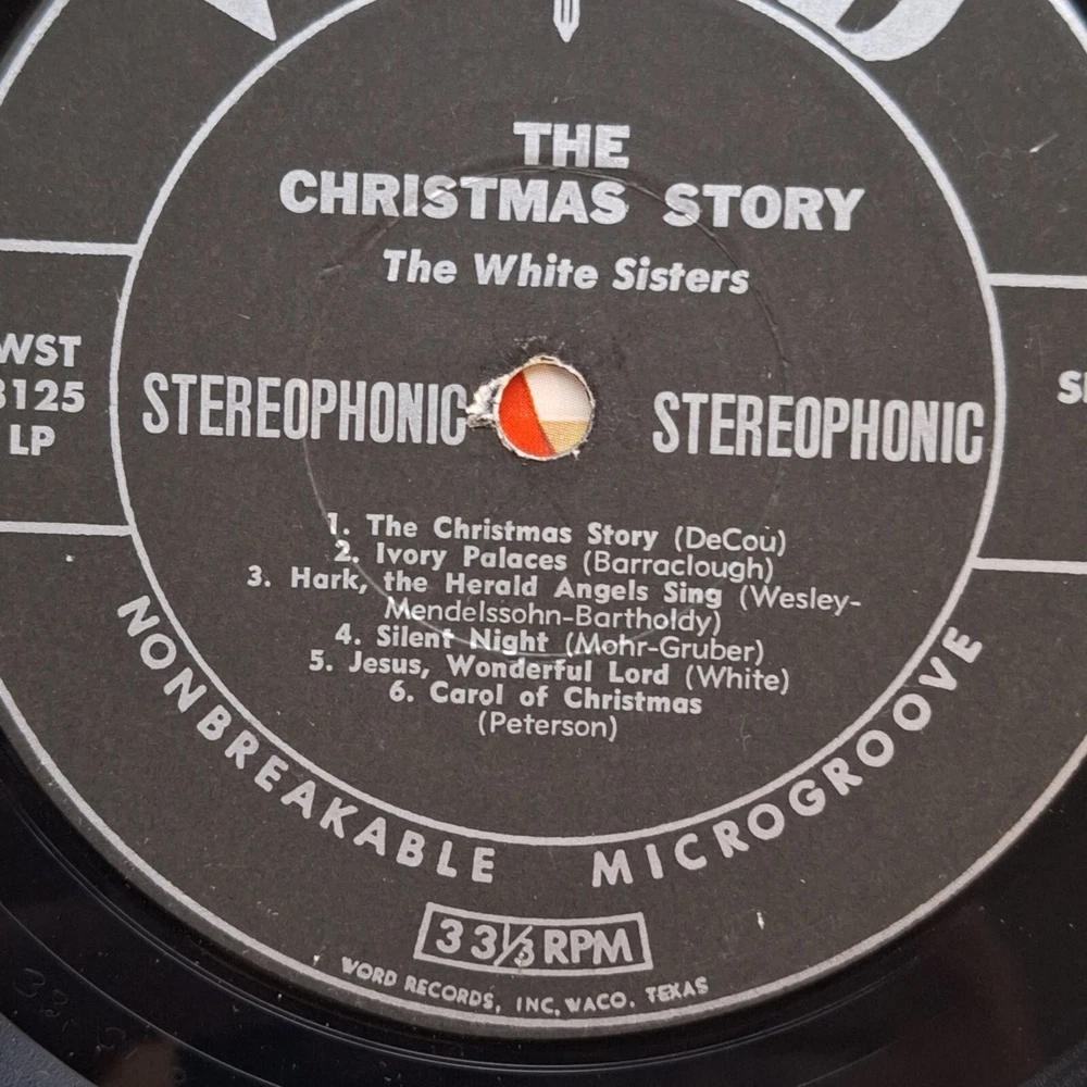 This vinyl LP by The White Sisters is a must-have for any Christian music enthusiast, especially during the Christmas season. With a speed of 33 RPM and a record size of 12", this record features the album "The Christmas Story" released in 1960 by Word Records. The catalog number is WST 8125 LP. The material is vinyl and the record grading is Very Good Plus (VG+), while the sleeve grading is Very Good (VG). The White Sisters' contemporary Christian style is sure to bring joy to any occasion, especially during Christmas. This LP is a great addition to any collection and is perfect for those who appreciate the beauty of vinyl records. Get your hands on this classic album today and enjoy the timeless message of The Christmas Story.