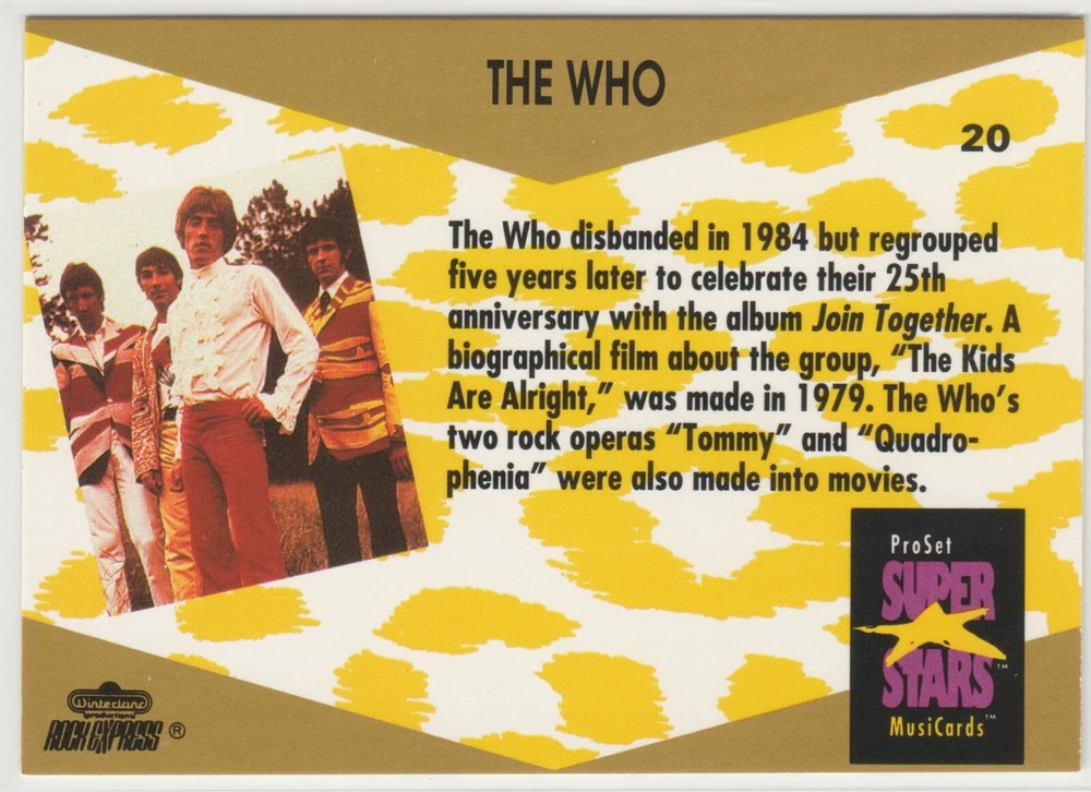 The Who #20 Legends 1991 ProSet Super Stars MusiCards