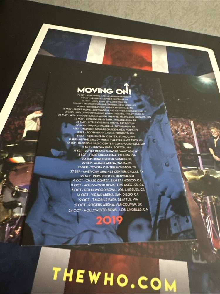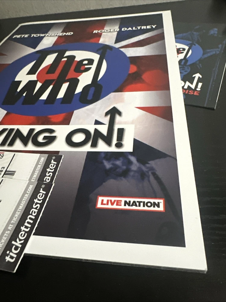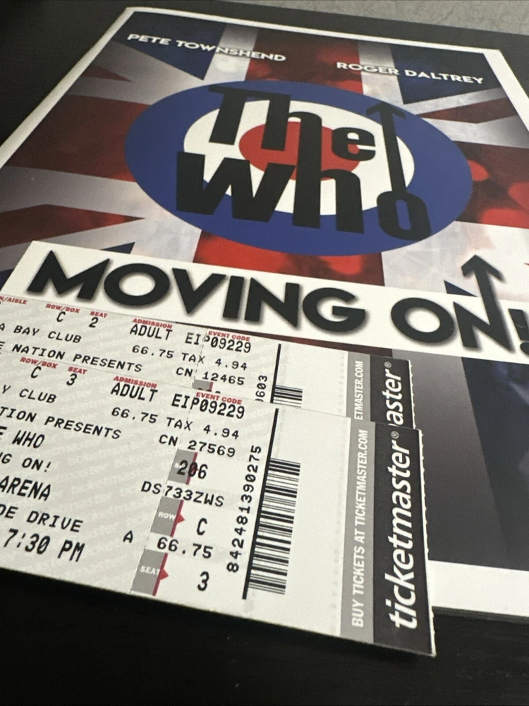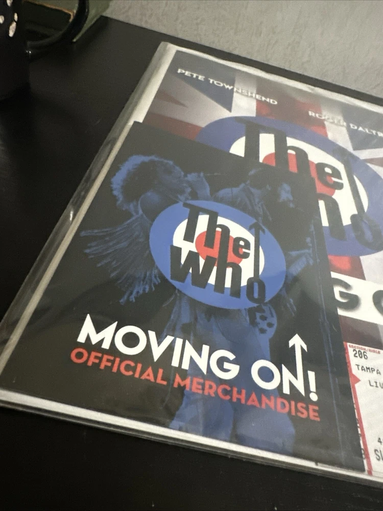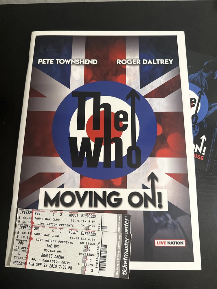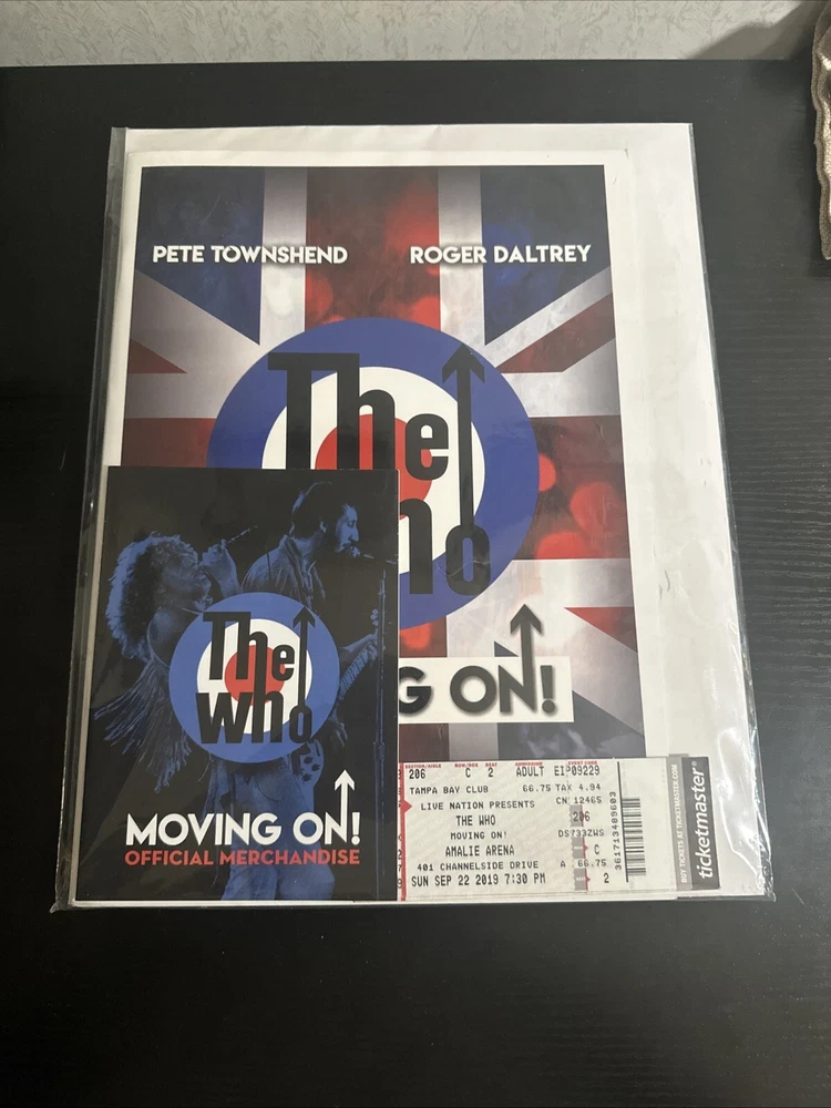 The WHO Moving On! Tour Book & Concert Tickets (2x) North American Tour Sept. 22, 2019 Tampa FL Sold with bag and board. Tour Booklet: near mint condition, with minimal edge wear should. Please expect normals surface wear from handling . Tickets: near mint with minimal edge wear , see photos . Bonus merchandise book will be included : good condition. Sold as is preowned/pictured with no return . Thanks for stopping by ✌️ Immerse yourself in the nostalgia of The Who's classic era with this authentic memorabilia from their Moving On concert in Tampa, FL. This piece serves as a testament to the band's enduring legacy in the rock and pop genre, featuring original tickets and a booklet that offer a tangible connection to the music industry's storied past. Whether you're a dedicated fan of The Who or a collector of music memorabilia, this item holds value beyond its unknown country of manufacture. It's a celebration of the band's iconic performances and a cherished keepsake that captures the spirit of live music and the timeless appeal of one of rock's most influential acts.