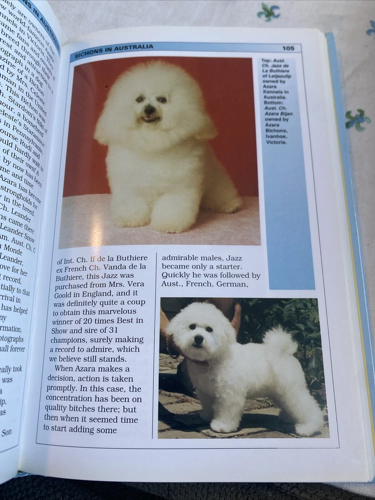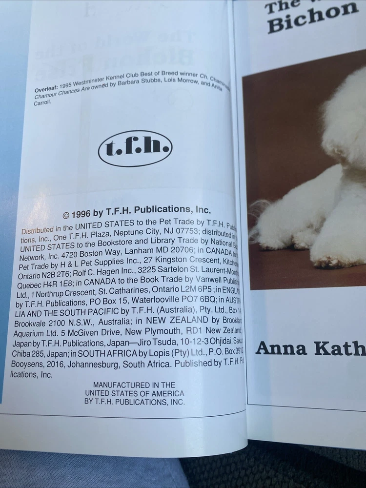 Explore the fascinating world of the Bichon Frise with this collector's edition hardcover picture book. Written by Anna Katherine Nicholas and illustrated by a talented artist, this book is a must-have for all dog lovers. It is a part of the Barron's Pet Handbooks Ser. and published by BES Publishing in 2004. The book is in English and has 160 pages, measuring 7.9 inches in length and 6.5 inches in width, with a weight of 11.2 ounces. It is suitable for young adults, ages 9-12, and adults who are interested in dogs, breeds, training, and general topics. The book is signed by the author and features illustrations that bring the text to life.