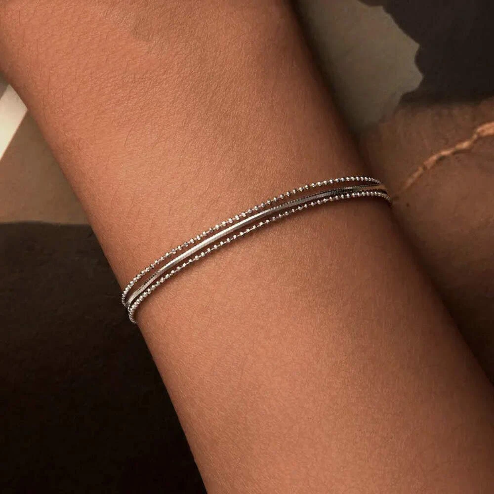 The minimalist triple-layer bracelet The Minimalist Triple-Layer BraceletAdd a touch of elegance to your everyday look with this stunning triple-layer bracelet. Made from 100% 925 sterling silver, this trendy piece is perfect for any occasion, whether it's a gift for your girlfriend, anniversary, engagement, party, or wedding.The bracelet features a sleek and minimalist design, with a geometric shape and no main stone, making it versatile and easy to pair with any outfit. The silver metal adds a touch of sophistication, while the chain and link style adds a modern twist.Measuring at 160+50mm, this bracelet is the perfect fit for any wrist. It is also made with a 925 sterling silver metal stamp and plated with white gold for a luxurious finish.As a bonus, this bracelet comes with a gift pouch, making it an ideal gift for your loved ones. Whether it's for your teen girl, girlfriend, best friend, sister, or daughter, this bracelet is sure to make them feel special and loved. The minimalist triple-layer bracelet The Minimalist Triple-Layer Bracelet Add a touch of elegance to your everyday look with this stunning triple-layer bracelet. Made from 100% 925 sterling silver, this trendy piece is perfect for any occasion, whether it's a gift for your girlfriend, anniversary, engagement, party, or wedding. The bracelet features a sleek and minimalist design, with a geometric shape and no main stone, making it versatile and easy to pair with any outfit. The silver metal adds a touch of sophistication, while the chain and link style adds a modern twist. Measuring at 160+50mm, this bracelet is the perfect fit for any wrist. It is also made with a 925 sterling silver metal stamp and plated with white gold for a luxurious finish. As a bonus, this bracelet comes with a gift pouch, making it an ideal gift for your loved ones. Whether it's for your teen girl, girlfriend, best friend, sister, or daughter, this bracelet is sure to make them feel special and loved. × × × × × × × × × × × × × Tell a friend Watch now Postage info Click the Postage tab above the listing description for more info FREE Postage Click the Postage tab above the listing description for more info! Additional delivery notes PICK UP OPTION Sorry, our items are NOT available for pick-up. PAYING VIA PAYPAL We accept PayPal on our all our items so you can shop with confidence. Simple choose the PayPal option when proceeding through the checkout. Additional Information No additional information at this time Ask seller a question You might also like Eye of Horus Open Ring Water Droplet Ring Pearl Earring Vivid Tassel Long Earrings Contact To contact our Customer Service Team, simply click the button here and our Customer Service team will be happy to assist. Ask seller a question © Piecesia Postage Shipping is FREE for this item Payment Accepted Payment Methods PayPal Returns Returns are accepted Items must be returned within 30 days of the auction ending Buyer will pay for return shipping. eBay integration by