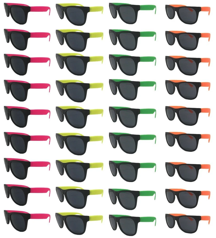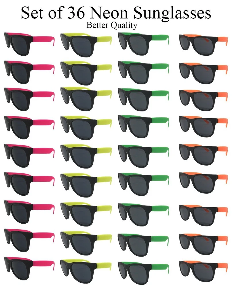 TheGag Neon Sunglasses (Pack 36) Assorted Cool Colors Neon Sunglasses Party Favors-Pack Wholesale Bulk for Adults Kids UV 400 Protection: Use Daily, these neon sunglasses are designed with reliable UV 400 protection. 36 PERPACK-You get 36 Neon Sunglasses - kids sunglasses in a bulk pack. ASSORTED COLORS—Each Neon Sunglasses Party Pack will include at least four different bright neon colors: Yellow, Green, Pink, and Orange. KIDS AND ADULTS- Fits most kids Aged 7 or over and average size adults. Our Neon Sunglasses measure 5.5 Inches. PARTY FAVORS- Our neon sunglasses are used for party favors for gift-goody bags and as goody bag fillers or just hand them out to everyone. Mardi Gras, Birthdays, Graduation Parties, Summer Parties, Beach, Skiing, Promotional giveaway, Vacation sunglasses, pool, dance, classrooms, students. UV 400 Protection: Use Daily, these neon sunglasses are designed with reliable UV 400 protection. 36 PERPACK-You get 36 Neon Sunglasses - kids sunglasses in a bulk pack. ASSORTED COLORS—Each Neon Sunglasses Party Pack will include at least four different bright neon colors: Yellow, Green, Pink, and Orange. KIDS AND ADULTS- Fits most kids Aged 7 or over and average size adults. Our Neon Sunglasses measure 5.5 Inches. PARTY FAVORS- Our neon sunglasses are used for party favors for gift-goody bags and as goody bag fillers or just hand them out to everyone. Mardi Gras, Birthdays, Graduation Parties, Summer Parties, Beach, Skiing, Promotional giveaway, Vacation sunglasses, pool, dance, classrooms, students. Shipping from the USA All of our products are shipped from the USA, ensuring quick delivery to your destination. Payment We offer the following payment methods: PayPal, credit card, bank transfer, and eBay's secure payment system. Free Shipping & Free Returns Shipping within the USA is FREE. Additionally, any return is absolutely free for you. Risk-Free Purchase You have the option to return an item within 30 days without any justification. We cover the return shipping costs! Fast Shipping We ship immediately upon receipt of payment. Generally, the package is delivered within 2-3 days in the USA. If it takes longer, we will contact you. Quality and Costs Made in Europe, USA, China No customs fees or additional charges Total satisfaction guarantee Invoice with declared VAT available upon request in .pdf format Feedback Your feedback is very important to us. After you pay for your purchase, you will automatically receive positive feedback from us.