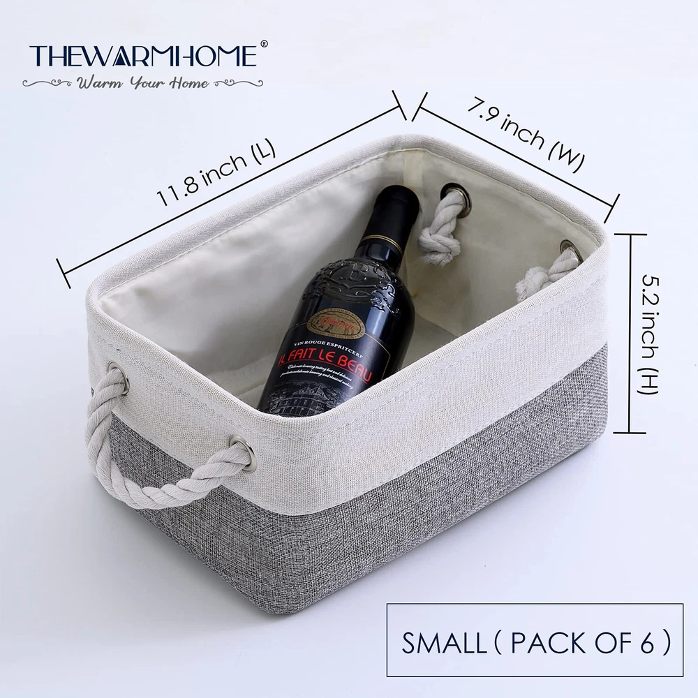 TheWarmHome Small Storage Baskets for Organizing,Storage Baskets for Shelves,Small Fabric Storage Bins W/Handles For Closet Nursery Toy Decorative Foldable (White&Grey, 11.8L*7.9W*5.2H-6 Pack) SMALL BASKETS SETS& PRACTICAL: 11.8”L x 7.9”W x 5.2”H, TheWarmHome storage bins provide a solution to most needs: organizing and storing baby products, clothes, shoes, kid’s toys, pet products, toiletry storage, laundry clothes, towel, blanket, bedsheet, sport gears, tissue,hats,scarves,socks,keys or other small items.can be used in bedroom, living room, study room,rest room,bathroom, kitchen, office, shelf, closets and cabinets.excellent choice for keeping your space nice, tidy and organized MINIMALIST DESIGN & ARTISTIC & DECORATIVE: TheWarmHome stackable storage bins had great storage capacity and stylish. Minimalist design and grey&white neutral color exterior fabric can be integrated into any home decorations and styles. White cotton rope handles on the sides add a nature touch. The decorative basket is like an art, not only provide a solution to many storage needs make home keep clean and tidy, doubles as a charming decoration embellish your room . TheWarmHome, WARM YOUR HOME HANDMADE STICHED & STURDY: This fabric storage basket outside fabric is made of linen &thicken Environmental EVA,and used a lining material for the inside. Semi handmade stitched. Sturdy metal rod frame around the top keep the basket shape. Strong seams and rope side handles, make this organizer bins are sturdy and easy to grab. Stand up great on their own even unfilled and ensure a greater product lifespan PERFECT BASKET FOR GIFTS IDEAS - As a must have for home organization and storage, TheWarmHome organizer bins is the perfect gift basket for your lover. Contrast plastic woven wicker or more material, Fabric material softer and Foldable, easy storage and clean, more suitable use in home. 10 years + professional factory, Use better EVA fabric materials, Produce more sturdy products, the best choice of Christmas/ Newborn /Birthday/ Wedding gift for kids /wife /mother /husband /friends CARE TIP - Collapsible design for space saving, before use to get the wrinkles out the fabric storage bin: either stuff the fabric storage bins with blankets and pillows for a few days and the baskets will take the shape , or steam iron them at low-heat setting; dusting the basket with a soft dry cloth is recommended. Spot clean with light soapy water when needed. Not recommended to machine wash for there are metal frame. Shipping We offer FREE shipping on all orders! We use a selection of shipping services such as UPS, FedEx, USPS etc. We only ship to the lower 48 states, no APO/FPO addresses or PO Boxes allowed. Local pickups and combined shipping options are not provided at this time. Return You can return a product for up to 30 days from the date you purchased it. Any product you return must be in the same condition you received it and in the original packaging. Please keep the receipt. Payment We accept payment by any of the following methods: PayPal Please pay as soon as possible after winning an auction, as that will allow us to post your item to you sooner! Feedback Customer satisfaction is very important to us. If you have any problem with your order, please contact us and we will do our best to make you satisfied. Contact Us If you have any queries, please contact us via ebay. We usually respond within 24 hours on weekdays. Please visit our eBay store to check out other items for sale! Thank you for shopping at our store.