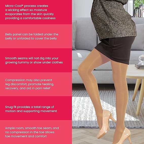 Powered by Frooition All Items See our eBay store for more great items >> Shop Categories Other Shoes and Boots Coats and Jackets Back Braces Wrist Braces Knee Braces Compression Hosiery Socks Camping Gear Misc. Therafirm 15-20mmHg Medium Long Support Black Medium Womens Maternity Pantyhose - 46545 Item Description Product Category : Apparel UPC : 721734465452 Title : Therafirm 15-20mmHg Medium Long Support Black Medium Womens Maternity Pantyhose - 46545 Walmart Subcategory : Clothing Description : This listing is for one pair of Preggers by Therafirm Maternity Support Pantyhose - 15-20mmHg Mild Compression Nylons Black Medium Long) Preggers by Therafirm • Mild Support Maternity Pantyhose are made with a graduated support level of 15-20mm Hg. • True gradient compression gradually decreases towards the top of the stocking to promote blood flow. • Comfortable, supportive belly panel that will fit during all stages of pregnancy. Belly panel can be folded under the belly or unfolded to cover the belly. • Micro-Cool process wick moisture away, keeping you cool and comfortable. Smooth seams will not dig into your growing tummy or show under clothes. • Reinforced toe for durability and rounded for a comfortable fit.