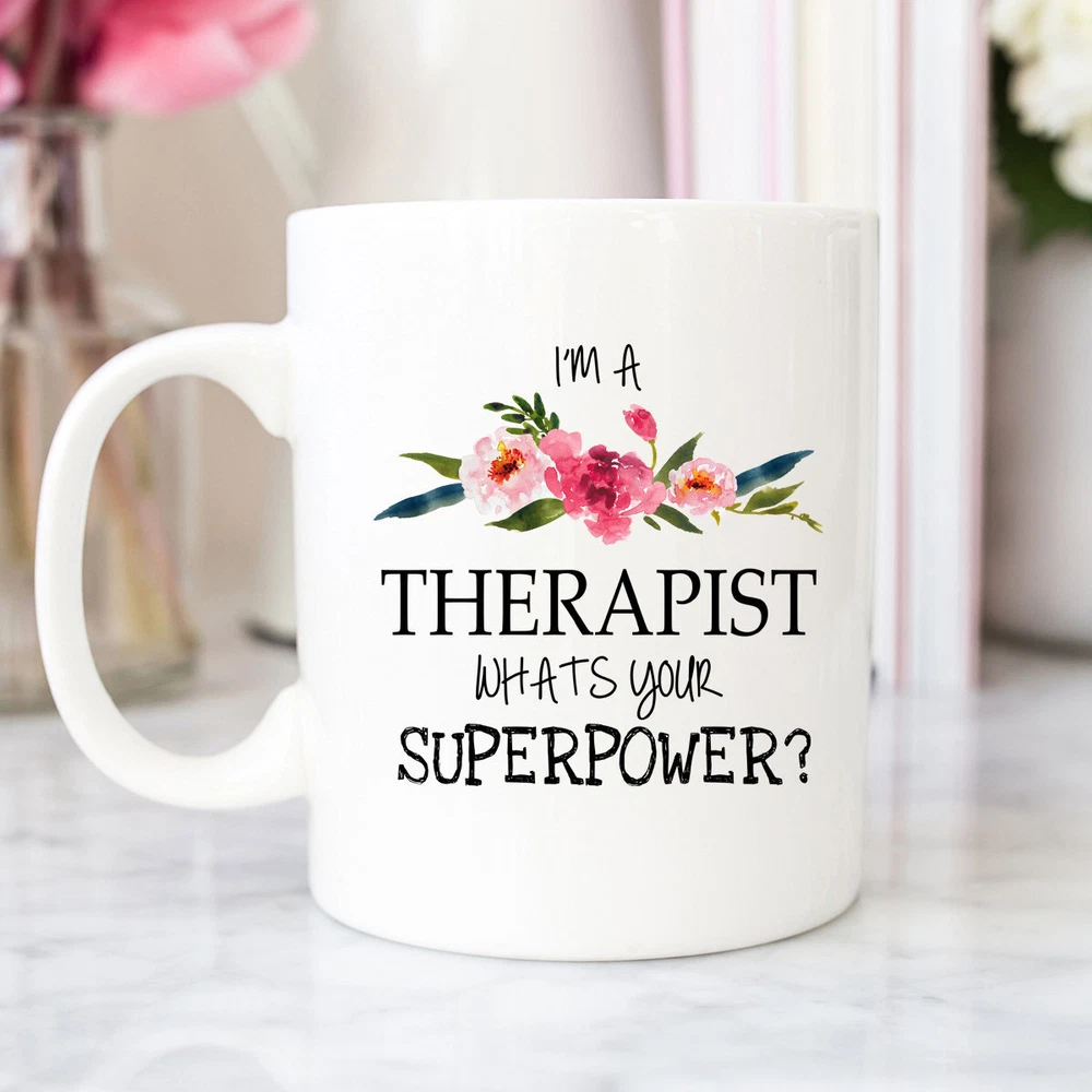 Therapist Gift Funny Mugs Therapist Therapist Mug Christmas Gift Thankyou Gift Product Details.. This high quality 11oz. ceramic white mug has a premium hard coat that provides crisp and vibrant color reproduction sure to last for years. Perfect for all hot & cold beverages. The highest quality printing possible is used. It will never fade no matter how many times you wash it. Material: 100% Ceramic. Print both sides. Dishwasher and Microwave Safe. High Gloss + Premium White Finish. Printed in the U.S.A. Personalized & Custom. We support personalized and custom mug to add custom, when placing an order, you can add notes to the "order note" in shipping address section. Also you can contact us directly via message. Shipping Info. Ready to ship in 1 to 2 business days, All products are made-to-order and proudly printed in the United States. Shipped by USPS and DHL, You will receive your order in 5-7 days. Replace & Refund. All products are defective during shipping broken, chipped will be replaced free of charge. You are not satisfied with the product, we will refund 100% money to you. If any other issues arise, please do not hesitate to message, we would be more than happy to assist you.