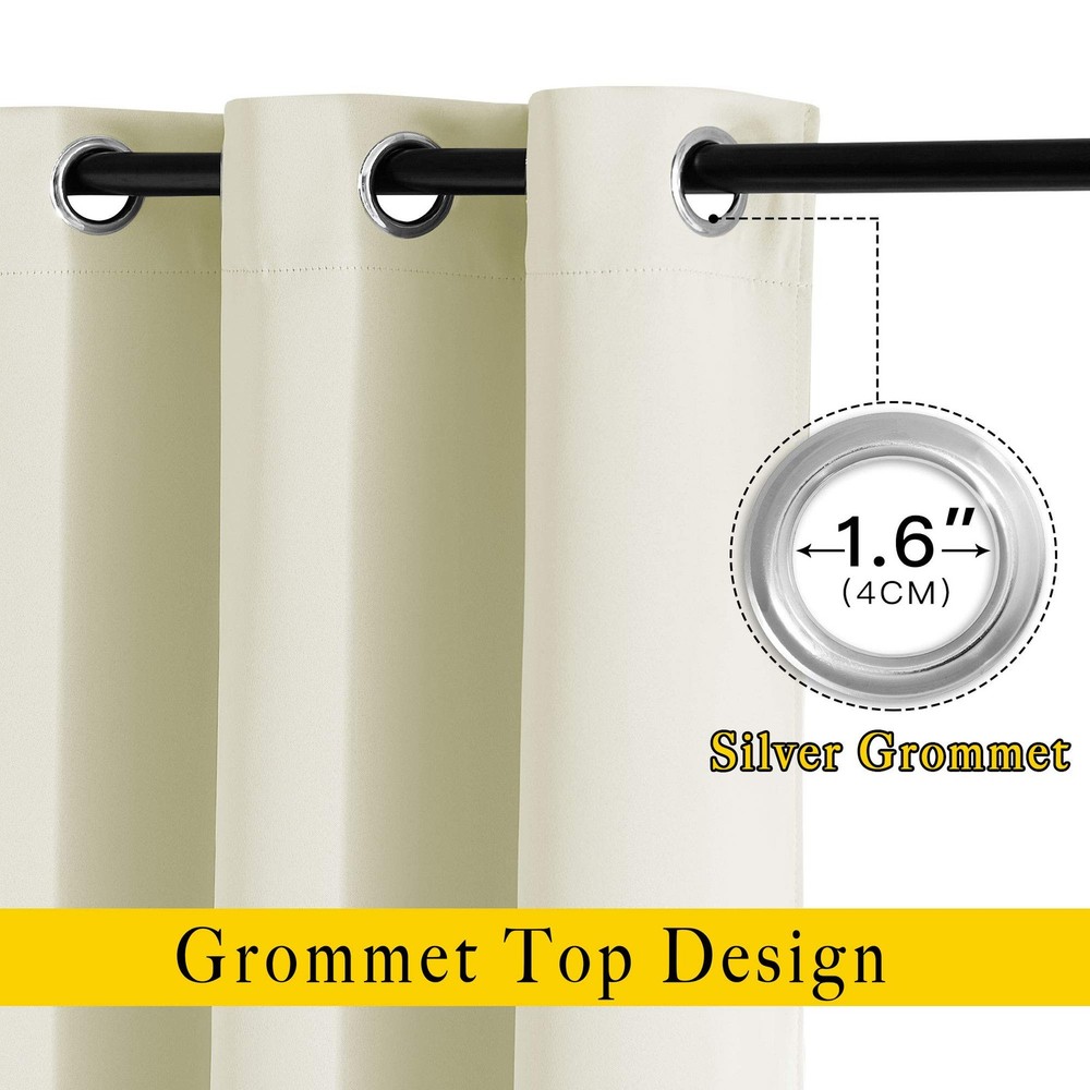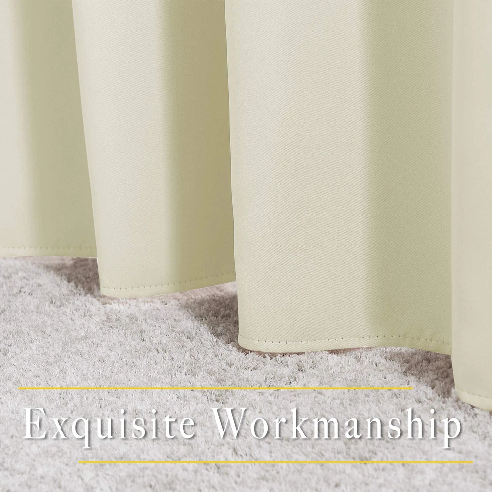Blackout Curtains are so much more than just bits and pieces of fabric that are sewn together to prevent sunlight from entering your home, they go beyond that mundane function and provide additional benefits that do not meet the eye instantly. Light Blocking Energy Savers. Having the heavy, multi-layered microfiber blackout window curtains or drapes can make a world of a difference in reducing the amount of light that comes in from outside, which has green-conscious consumers excited about investing them as energy-efficient window treatments. A home insulated and remains warmer in wintertime relieves the strain on home heating and reduces 25 percent energy budget at most. Sleep Soother n Noise Buffer. It's hard to get babies to take a rest during the day when the sun is streaming brightly through a bedroom window. Blackout curtains encourage the best possible sleep and most comfortable setting for day sleepers and the ones who have trouble falling asleep, by automatically darkening and lowering noise levels. Absolute Privacy n Relax. Not only that but also make your resting zone truly blissful. They would be perfect for any home theater and supply you with the enjoyment of watching TV in real darkness. If you are looking for great and cost-effective ways of re-inventing the look of your home, readymade curtains would be the game changer in your shopping cart. They are crafted for the topmost and luxury, coming with the strong grommet ring top for easy installation and smooth sliding over a rod. Each curtain panel is carefully ironed and ready to serve as your window dressing. What color do you like? Elegant Design: 2 panels per package. Each Blackout Curtain measures 52" wide x 84" long. The design of silver grommet (1.6-inch inner diameter) creates casual elegance for your house, which makes the curtains easy to install and slide. Amazing Material: Super heavy and soft Blackout Curtain Panels are very upmarket. Besides, 85%-99% light blocking, thermal insulated, soundproof, and energy-efficient. Thread trimmed and wrinkle-free, both sides are the same color. Good Performance: Protect your furniture and floor exposed to the sun, while still helping you on heating and cooling your home. Privacy protection. The greatest benefit is to bring you a good night's sleep, making you full of energy every day. Wide Compatibility: Don't bother looking for sheer curtains to match, choosing different styles of voile curtains with white color in the store. Such curtain sets provide a more permanent harmonious window dressing, making your home lively. Easy Care: Good quality finishing will withstand years of use. Machine washable and Wash the water temperature below 86℉. Mild detergent no bleaching. Low-temperature ironing. Don’t use sharp things scratching curtains.