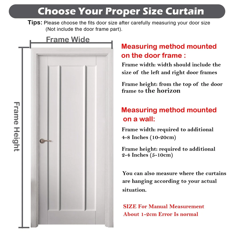 Warm in winter and cool in summer, used in air-conditioned rooms. INSULATED DOOR CURTAIN combining simplicity and elegance to beautify your home. Function: waterproof, windproof, moistureproof, suitable for all walks of life Insulation Protection: Waterproof, reduces ambient noise, protects against blizzard cold No Perforation: Widen hook & loop tape, which will not leave perforations in the door Easy to Care: Keep the insulated curtains clean by wiping lightly with a cloth. Various Occasions: home, living room, terrace, greenhouse, supermarket, school, hospital, shop, restaurant, restaurant, warehouse, factory, air-conditioned room, etc. Note: Due to the difference between different monitors, the picture may not reflect the actual color of the item.If you have any questions during the purchase or use, please feel free to contact us by email. Wish you a happy life! Door Curtain Size: The curtain size is 34" x 80" - Fits door size max to: 32" x 78". Before purchasing, please carefully measure your door size (NOT include door frame part) and order that size. Tempeture Protection: Filling with fluffy cotton fiberfill to avoid heat loss. It can teffectively resisting the cold wind, maintaining indoor temperature, save electricity and money, keep warm in winter and stay cool in summer. Multi Functional: waterproof,soundproof and moisture resistant, wear resistant and cold resistant ,the inner soft cotton lining is thick enough to keep your house warm and comfortable during the cold winter, strong against the cold. Multiple Hanging Methods: There are three ways to use it to make sure the curtain doesn't come off easily, one is to use widening loops on the top of the door curtain, the second is to use push pins to enhance the adhesion and the other is use the curtain rod to pass through the rod pocket. Widely Used: The magnetic door curtain can be used as a temporary door and great for interiors/exterior doors, air-conditioned room, family, supermarket, school, hospital, shopping mall, apartment, restaurant, public place, warehouse, factory etc.