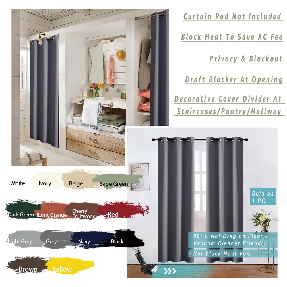 Thermal Insulated Curtains for Winter,Heavy Thick Insulation Door Blinds Curtain for Doorway,34x80 in Long,Dark Grey Custom Size for Standard Entry Doors:Pack of 1 panel curtain measures 34 inch wide which is minimum width for ruffle curtain aesthetic like a accordion as image shows.80 inch length which is minimum drop size for most entryways to block draft and insulate cold in winter effectively. Details of Fabric Functions:Woven of heavy thick microfiber polyester with black yarn inside perfect provides: 1. 90 - 100% black out(Please understand dark colored works better); 2. total full privacy; 3. big thermal insulated difference with the curtain closed than folding open as it can block cold air into the house like a temporary shield or room divider screen.; 4. Soundproof curtains reduce noise from outside or from other room Grommet Top Design:Silk Sliding on curtain rod with silver metal rings.You can easily penetrate into the drape or just slide it open a bit.The large grommet(1.6 inch inner diameter) fits most decorative curtain rods.The curtain rod is not included in the package,no tieback,no beads and other accessories. Versatile Home Essential Room Decor:Use the simple,modern and soft drapery as an exterior door curtain or interior door curtain between kitchen,dining room,bedroom,living room,patio glass door. Special Note:The fabric is also waterproof meaning it is much durable and even can be used as a outdoor curtains for patio,sun shade in sunroom/gazebo,and even as insulation shower curtain in winter. Custom Size for Standard Entry Doors:Pack of 1 panel curtain measures 34 inch wide which is minimum width for ruffle curtain aesthetic like a accordion as image shows.80 inch length which is minimum drop size for most entryways to block draft and insulate cold in winter effectively. SHIPPING Domestic Buyers - We have confidence in our products, but if you are not fully satisfied please contact us within 30 days of purchase and you will get full refund. - We ship within 3 business days of payment, usually sooner - We offer FREE shipping on all orders! - We only ship to the lower 48 states, no APO/FPO addresses or PO Boxes allowed International buyers – please note: Import duties, taxes, and charges aren't included in the item price or postage cost. These charges are the buyer's responsibility. - Please check with your country's customs office to determine what these additional costs will be prior to bidding or buying. * Order Cancellation Policy ** You can return a product for up to 30 days from the date you purchased it. 1. The seller reserves the right to cancel the special case only due to eBay cancellation fee. 2. The decision of seller is the final. 3. The seller will respond to the cancellation request within 2 business days. Please wait for the result of cancellation. 4. In case the cancellation is not completed by some reasons, the buyer can follow the options below to get the refund. 4.1 The buyer can reject the item when it arrives. 4.2 The buyer can send the item back to the seller within 30 days If the buyer receives item (USA Shipment ONLY). The seller will provide the FREE return label to the buyer when the buyer opens " Return Item" case on eBay by using the reason as "Change my mind" ONLY. 5. When buyer has placed the order. The order will be processed and completed by automatic warehouse system within 5 minutes. In case that buyer sends the cancellation request after 5 minutes of placing the order, the request will be rejected. **Sending direct message to cancel the order is not allowed for every case.* Return Policy For the return case - If buyer would like to return the items for refund or replacement, please CONTACT SELLER to receive the free return label from seller. The refund or replacement will be processed with the tracking number of return label which is provided by seller only. The other ways of return which are not approved by seller will not be processed for the refund or replacement.
