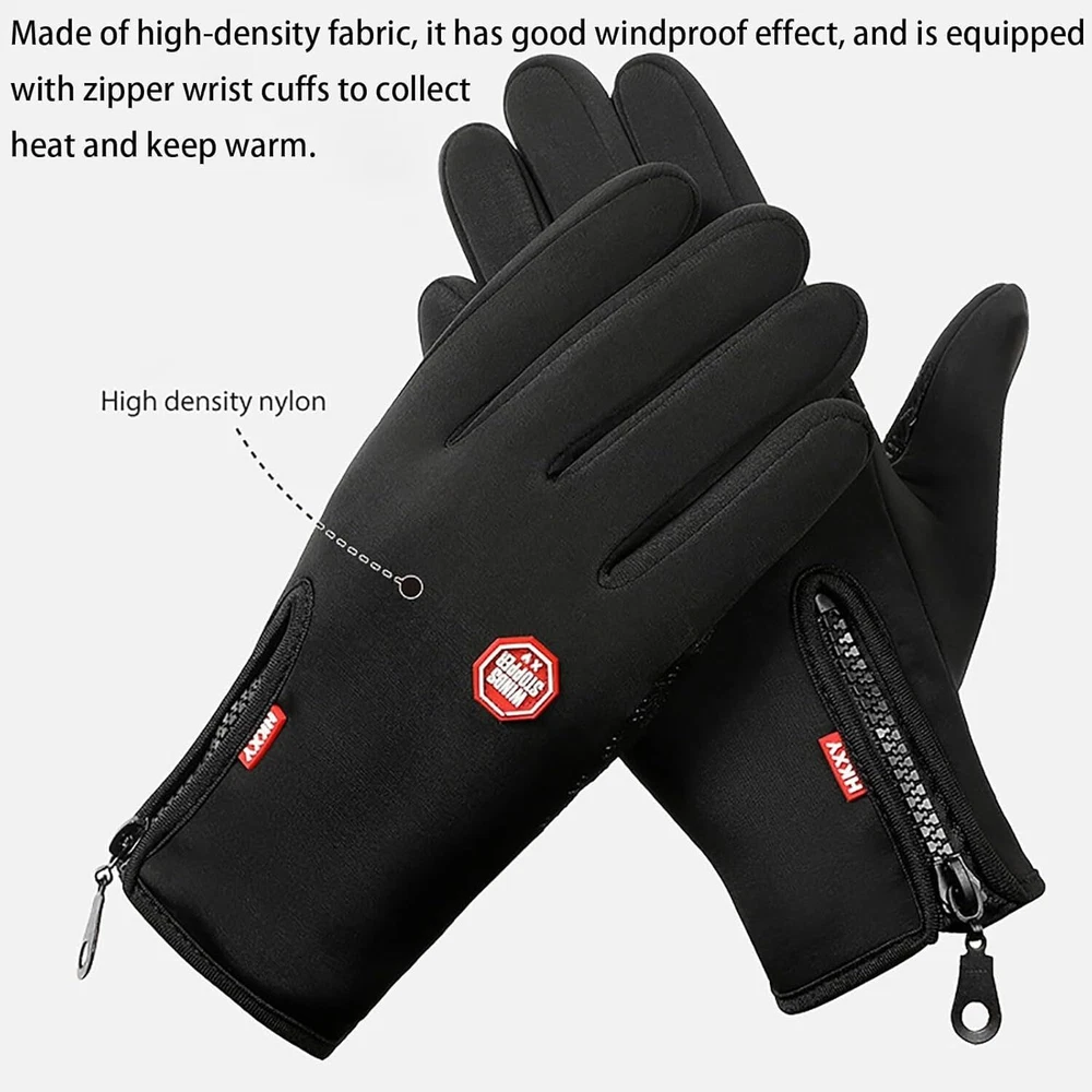 Features 100% Brand New & High quality 360-degree warmth Non-slip design, wear-resistant and non-slip, provide a better working experience. Zipper design, freely adjusted Windproof fabrics, Keep warm Touch the screen, convenient The inner layer of super soft fleece fabric & The outer layer of windproof thermal insulation material Suitable for outdoor activities. Stylish, beautiful, comfortable and high quality men's winter gloves are perfect for cold winter leisure, riding, driving, hiking, running, biking, snow, landscaping, cross-country skiing, snowmobiling and other winter outdoor activities. ...... Specifications Material:non-slip polyester fabric Shape: Full-finger Gender: Men, Women, Unisex Color:Black Occasion:Cycling, Hiking, Skiing, Climbing etc. Size:S/M/L/XL Size middle finger width of palm total length S 2.95" 3.54" 8.86" M 3.15" 3.74" 9.06" L 3.35" 3.94" 9.45" XL 3.54" 4.13" 9.84" Product Included 1/2 Pair of Gloves