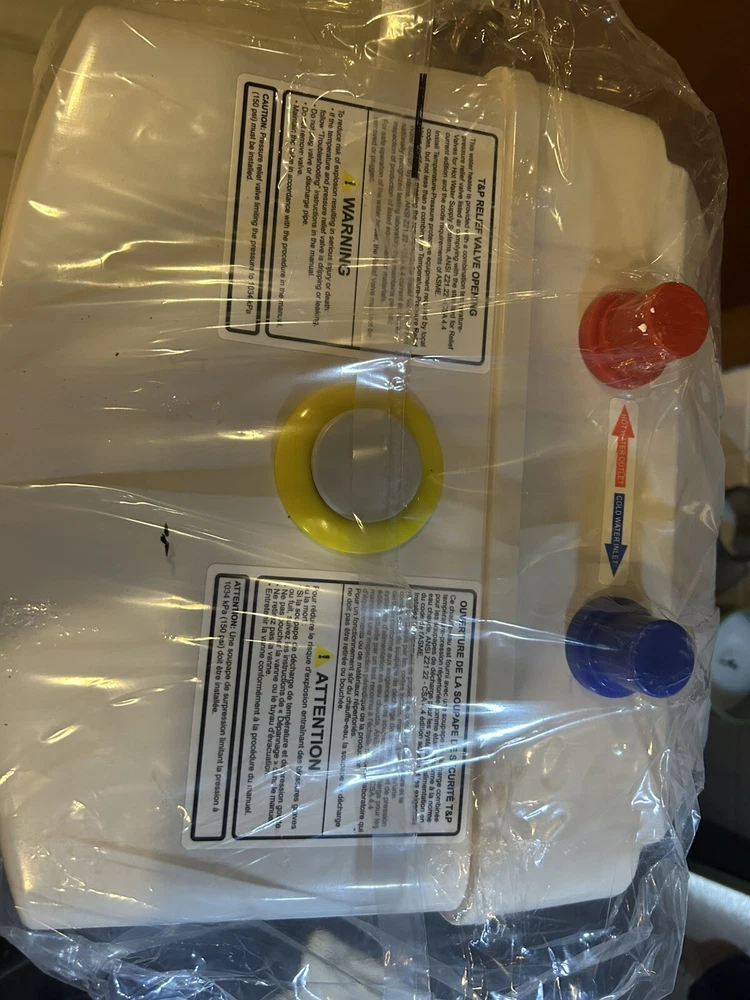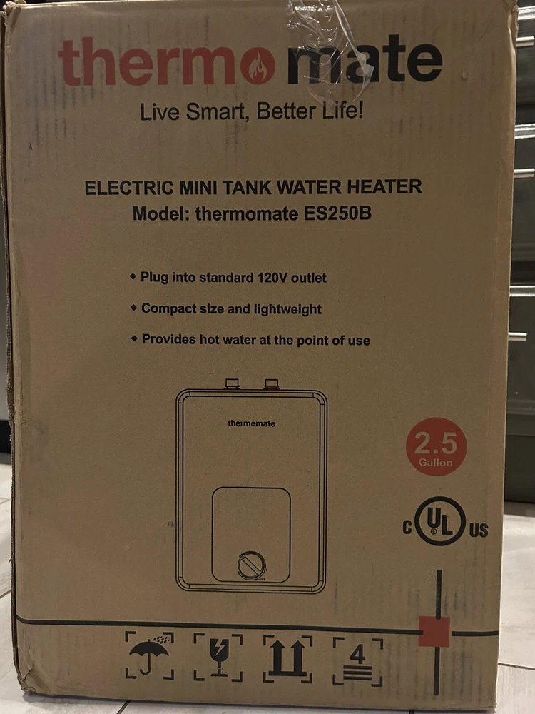 Open box IMMEDIATE HOT WATER - 2.5 Gallon point of use water heater to supply instant hot water on demand at your sink. 24 hours standby, foam insulation and fast reheating, eliminate the long time wait and wasting water EASY TO INSTALL - 1/2" NPT connector, corded plug into 120V outlet, simply tap into the water line and install the heater directly at the sink. Temparature & Pressure relief valve included, shelf, wall or floor mounted COMPACT DESIGN - Small tank water heater (11.4"W X11.4"D X22.4"H including valve), space saving design ideal for under sink placement in kitchen, bathrooms and other areas, even fitting in a cabinet IN-LINE OR INDEPENDENT - Serves as single point water heater or in-line as a booster to a larger hot water heater, knob to adjust temp between 68℉-140℉ ENAMEL COATING GLASS LINED - Gold porcelain linning for better insulation and preventing leaking, CSA T&P Relief valve CASH USA made, UL certified ensuring a safe long service life 377