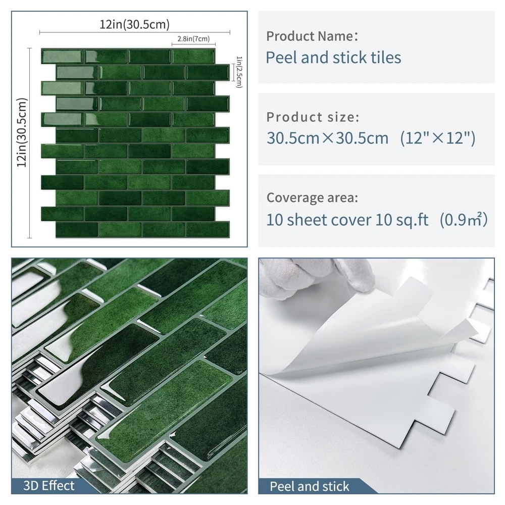 thick peel and stick tile Thickened Design: Easy to install and removable, no additional glue is required. just peel and stick,great for renters. 3D Visual Appeal:crystal epoxy resin surface mimics real tiles, adding elegance to any space. Heat & Moisture Resistant:Perfect for kitchen islands, washbasin splashback, RVs, TV background,cabinets, etc. (not for direct shower use). It can be installed behind the stove, but a certain safe distance should be maintained. It is advisable to keep a distance of at least 10 inches from an open flame. There may be slight color differences in different production batches. Please make sure to purchase an adequate quantity at one time.