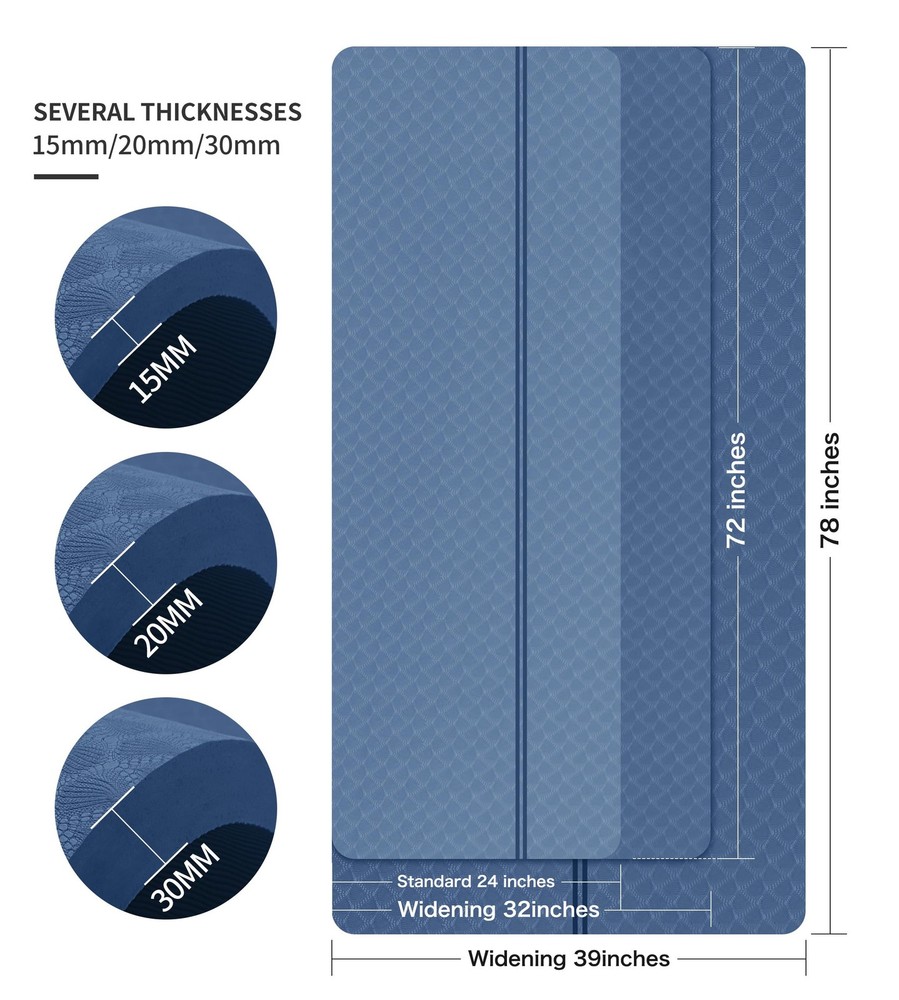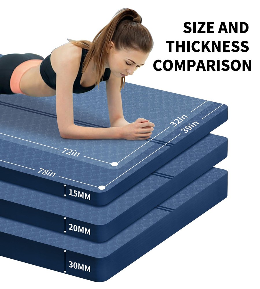 🌹'S SAFE & DURABLE YOGA MAT: Our Non Slip Yoga Mats Made of high quality skin-friendly professional material, ,made by high density foaming tech, tear resistant, wear resistant, quick rebound. PVC free, non toxic, eco-friendly, skin friendly. Durable yoga mat for men home gym exercise. 🌹NON SLIP SURFACE FOR ADDED STABILITY: The oversized mat has textured surface to enhance traction that you can perform any movement with confidence. Non-slip design aids in balance to hold postures much more longer and protect your joints and knees without compromising support or stability. 🌹FOR WHOEVER YOU ARE: For beginners who isn't sure that you want to stick with yoga but want to give it a shot, just be brave to try. For sports lovers, it's easier to develop good habits of workouts with the exercise mat. For hard workers who have little time to exercise, use it to keep fit or take a nap. For moms and kids, use it to enjoy the time of love. 🌹EXTRA LONG EXTRA WIDE: 's 72"x32"/78"x36" offers adequate space to fit any type of exercise like yoga, pilates, bikram, and fitness exercise.Most yoga mats on the market are 6mm, 8mm or even thinner. This yoga mat is thickened to 15mm,20mm,30mm which can provide more support and protection for your ankle, knees, joints, and body on hard floors, as well as absorbs vibration and reduces noise. 🌹CARE INSTRUCTIONS: Spot clean with damp cloth with cold water and mild detergent, Dry flat. Pls don't exposed to the sun for extended periods of time,we accept your return for full money refund with 30 days,100% satisfaction of after-sale service.