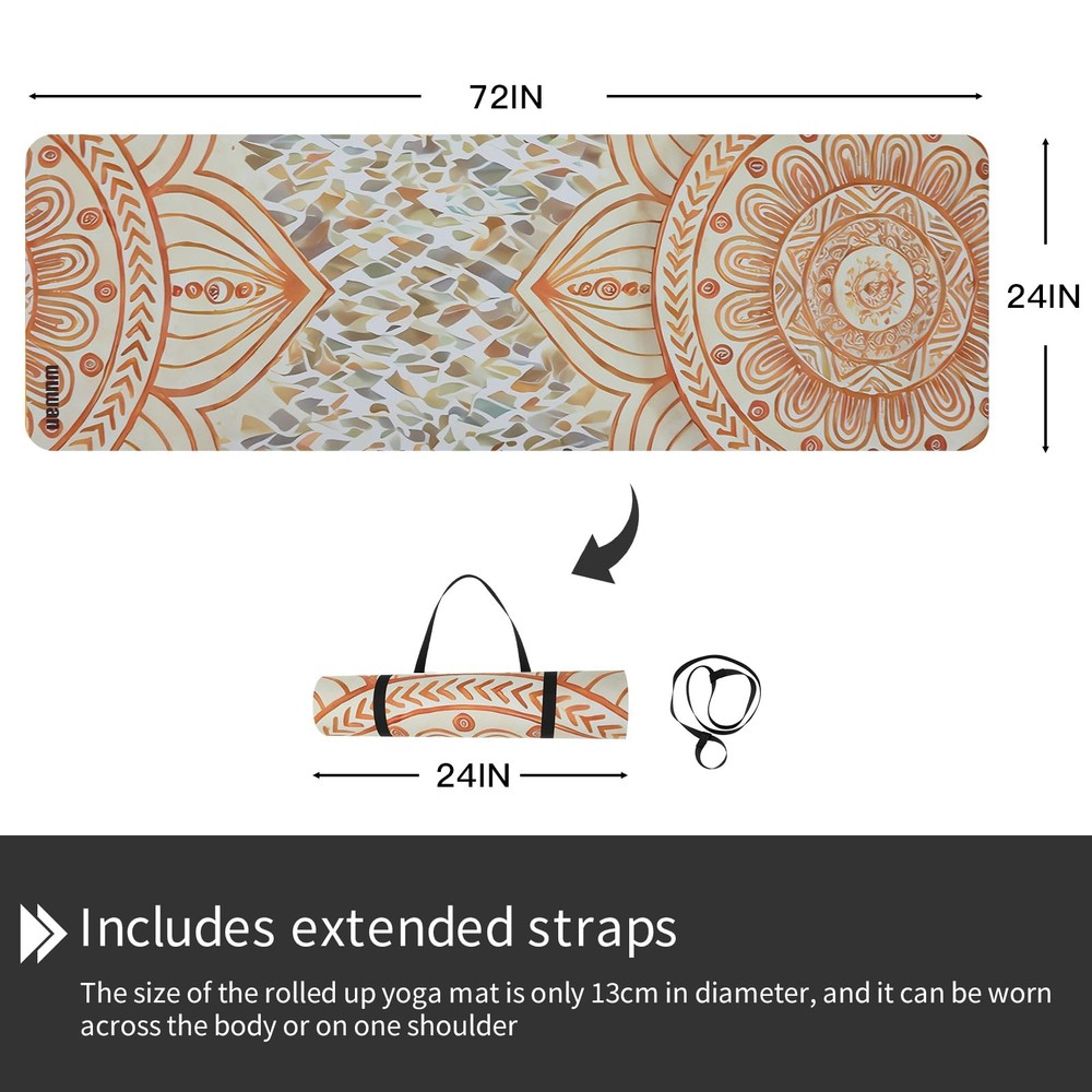 ---Suede surface can obtain a strong anti-skid performance,even if glued to water can also maintain good anti-skid performance ---Anti-slip effect Spraying water on the mat before use can effectively improve the anti-slip performance of the mat ---It is made of TPE&Suede.Excellent traction and grip.Easy to carry, perfect for travel.Non-slip suede for more sweat absorption and anti-slip,perfect for hot yoga. ---High-density lightweight TPE bottom layer. Perfect fitness mats for exercise. ---This yoga mat combines durability and style for the cutest of thick exercise mats for home workouts or even as a hot yoga mat. BIG SIZE: 72"(183cm) x 24" (61cm), 6mm extra thick, high density provides excellent cushioning and soft. All our mats come with a free carry Strap For easily rolled up for storage, making it easy to carry and convenient for practicing at home or on the go PREMIU MATERIAL: Ultra micro-suede top layer and high-density Eco-Friendly TPE bottom,Highly sweat absorbent, Provides a durable and supportive base, double anti tear layer,Made for Hot Yoga EASY TO CLEAN:Thick yoga mats for women,Hand washing can extend the lifespan of yoga mats,Simply gently wipe away surface dirt, no machine washing.Spot clean water or damp cloth with cold water and mild detergent VERSATILE INDOOR & OUTDOOR USE: Perfect for both indoor workouts and outdoor adventures—use it as a gym mat, yoga mat, or even a picnic blanket for ultimate flexibility. MULTIPLE PATTERN DESIGNS: We have a wide range of pattern designs to choose from, suitable for home decoration styles. Beautiful patterns will make people feel happy, great for yoga who values aesthetics