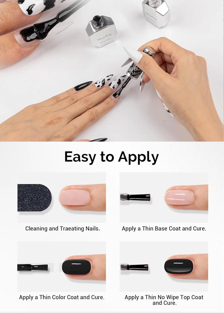 Store New Arrivals Add to Favorite View Feedback Contact Fast deliveries to the customer's home Quality customer service John Make the customers happy! Thick Gel Nail Polish Set- 2 Pcs 15ML Black & White Gel Polish Set Soak off UV LED White Gel Polish Christmas Gift for Women Nail Art Manicure Salon DIY Nail Design Decoration at Home Description Melodysusie thick gel:Only a thin layer of gel is needed for perfect coverage. If you apply too much gel, you will need to cure it under UV light for 30+s.The brush is ergonomic and provides smooth coverage, not only suitable for professional nail salons, but also for beginners. For a small fee, you can get professional salon-style manicures at home! The Black and White Gel Polish Kit is essential for everyone and every occasion! Curied with UV Led Nail Lamp: This is UV gel. It must be used with UV light, a base coat and top coat! This item does not include base⊤ coat, which needs to be purchased separately. Average UV LED light curing time 90-120 secs. Health-Conscious & Low Odor: Prioritizing your health, our gel nail polish is formulated with a toxin-free ingredient list, reducing the risk of nail damage and keeping the odor minimal. Perfect for those sensitive to strong smells, our polish ensures a safer, more pleasant manicure experience. Premium& Durable Formula: Our gel nail polish is crafted to offer a high saturation and high-gloss finish that lasts up to 21 days. The formula is designed for maximum durability and resilience, ensuring your nails stay beautiful through daily activities. Safety First:May cause an allergic reaction by skin contact in rare cases. Do a test before using it to check for any reaction.Stop using immediately once feeling uncomfortable.Avoid the gel nail polish contact with eyes,mouth and skin.If this phenomenon occurs,wash immediately with water.If you feel unwell, contact the doctor immediately.Please also keep out of the reach of children.Any problem, please contact us! Product Description 1 BLACK & WHITE 2 RED & WHITE 3 NUDE PINK & WHITE 1 HOW TO USE 2 HEALTHY MANICURE 3 TIPS 1 NAIL INSPIRATION 2 HIGH QUALITY GEL Liquid Volume 15 Milliliters Special Feature Long Wearing Color 2*15ML Black & White Type gel Material Feature Non-Toxic Model Name Black & White Material Type Free Resin Free Item Form Gel Package Dimensions 4.25 x 4.25 x 1.06 inches; 4.97 ounces Finish Type Glossy ABOUT US We offer the best prices around on high quality products. Our E-store includes media such as books, movies, music and games while offering electronics, toys, sporting apparel, clothing, tools, general home, garden items and more. SHIPPING We are always working hard to ensure your package arrives as soon as possible. Please understand that some factors like weather, high postal traffic, and the performance of shipping companies are outside of our control. We offer free shipping to the lower 48 states and ship within 2 business days of payment, usually sooner. We do not accept P.O. Boxes. Please provide a physical address. For shipping outside of the continental USA, we only use eBay's Global Shipping Program. The item is shipped to KY and then sent to the rest of the world. International customers are responsible for all duties and taxes. Continue to 'check out' to calculate costs for shipping the item to your country. Messages regarding eBay's Global Shipping Program MUST be directed at eBay EXCLUSIVELY. RETURNS We offer a 30-Day Return Policy on items in which you are not completely satisfied with. You have the option of a full-refund or an exchange of the item. No returns are available on items shipped outside of the USA PAYMENT We accept PayPal. CONTACT US This page content is yet to come Please ad us to your favorite seller and visit again later Thank You CUSTOMER SATISFACTION We try our very best to make sure every customer is completely satisfied. If there's a problem, message us! We're happy to help. WE ACCEPT
