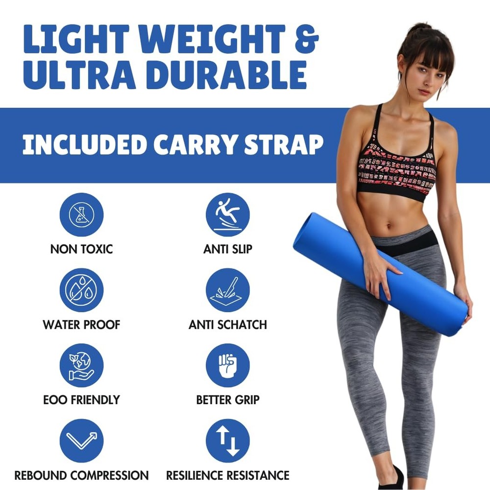 Find your flow with a yoga mat that blends performance, style, and comfort. This wide yoga mat for women features a thick textured surface that’s ultra-absorbent and slip-resistant perfect for yoga, pilates, and all types of fitness routines. Designed with body alignment lines and a soft vegan suede top layer, it offers exceptional grip and joint support without sacrificing elegance. Whether you’re practicing in a home gym, studio, or outdoors, the included strap makes it easy to carry on the go. Lightweight yet durable, this exercise mat stands up to daily use without fading or stretching. It’s everything you want in a pilates or yoga mat—stylish, supportive, and built for every level of practice. *Comfort & Cute Factor* Finally a cute yoga mat that’s as functional as it is fashionable! Designed for women who want a splash of style with their practice, this thick yoga mat supports your joints while keeping workouts cozy and colorful. *Thickness & Quality* Not too thin, not too bulky this thick exercise mat delivers ideal support whether you're deep in Pilates or flowing through yoga poses. The textured vegan suede surface feels great while giving you steady, cushioned grounding. *Durable & Easy to Clean* This fitness mat is as durable as it is beautiful. Designed to resist wear, stretching, and color fade, it wipes clean with a simple DIY yoga mat cleaner no bleach or harsh chemicals needed. Stylish yoga mats have never been this low-maintenance! *Slip Resistance & Alignment* No more sliding in downward dog. The anti-slip texture and body alignment lines help you stay grounded and centered. Whether you're practicing yoga at home or in class, feel confident with every move *Lightweight & Versatile* Whether you’re headed to the gym, yoga studio, or rolling it out at home, this lightweight yoga mat makes portability easy. Comes with a carry strap so you can take your practice wherever you flow perfect for travel, outdoor sessions, or your daily workout routine.