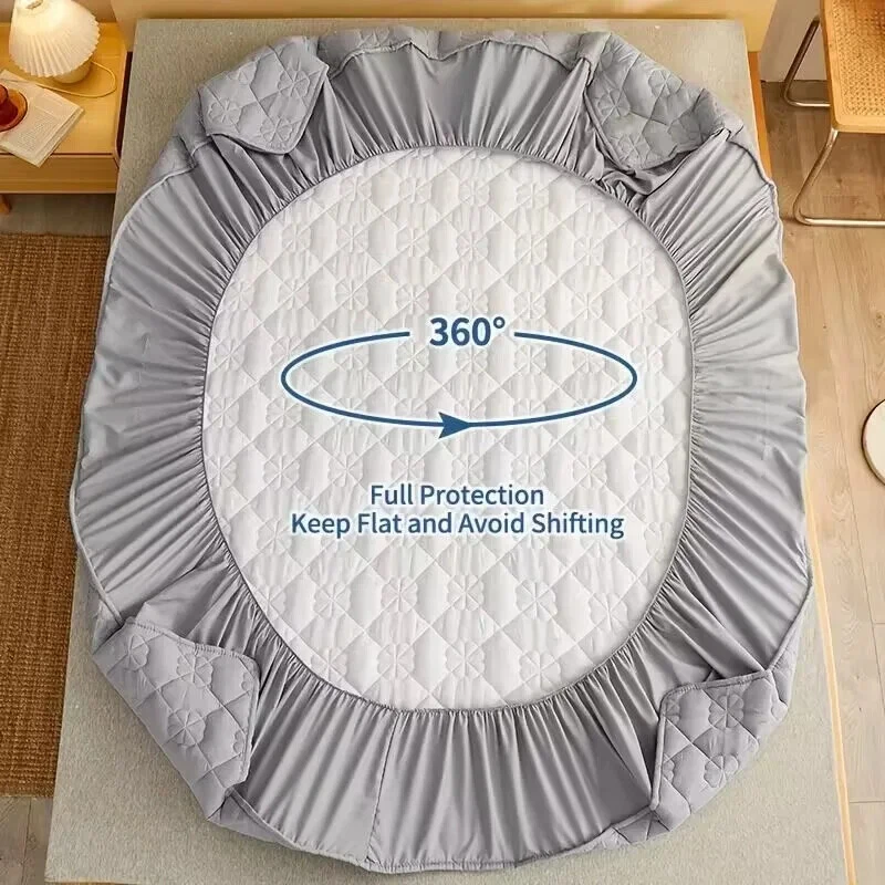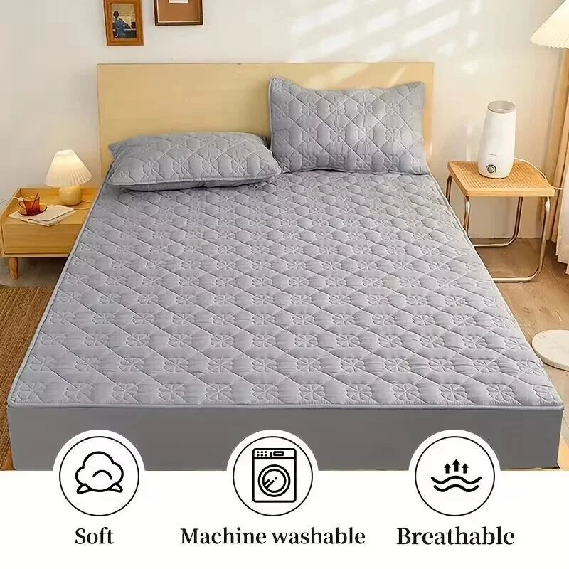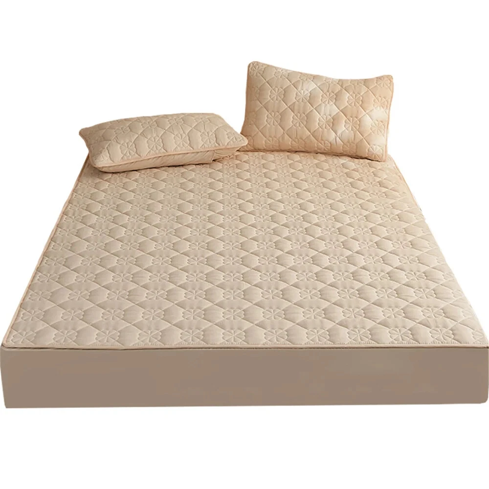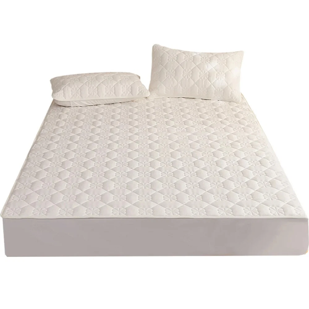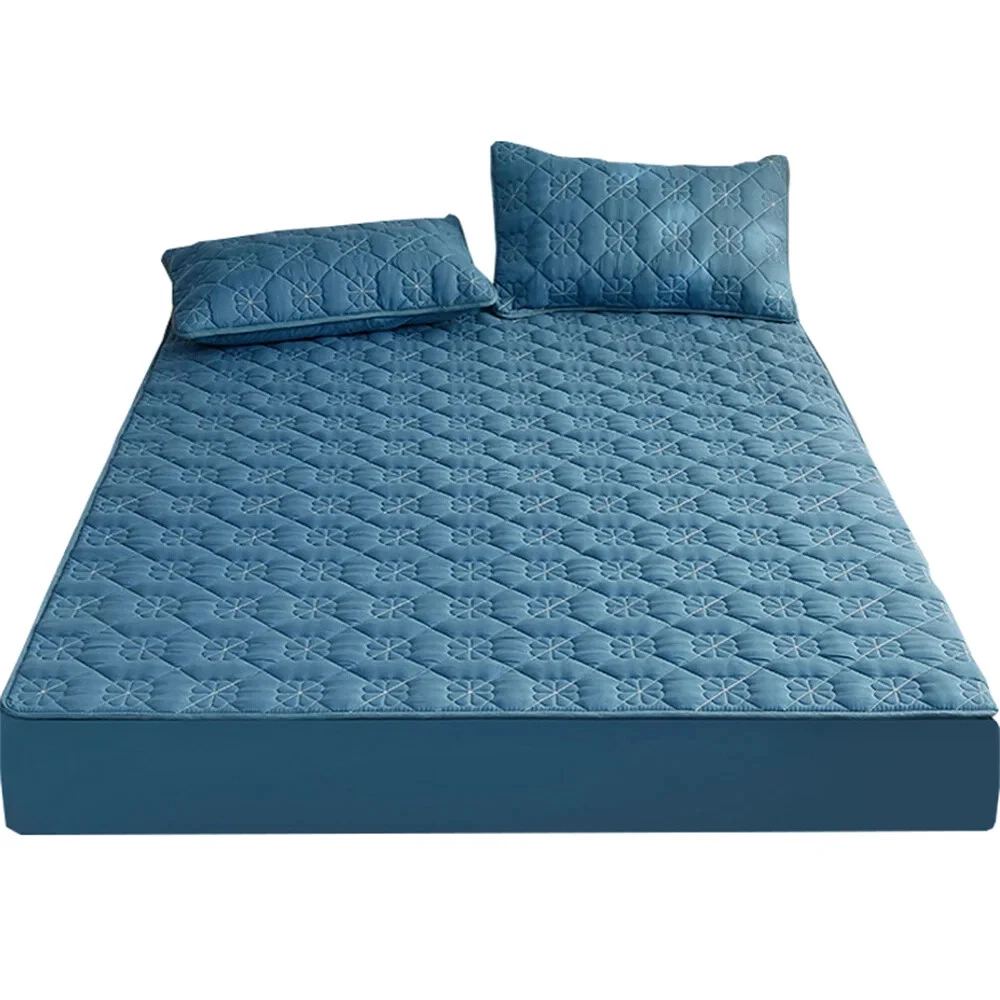 Thickened Quilted Non-slip Mattress Cover Flower Embossed Mattress Protector