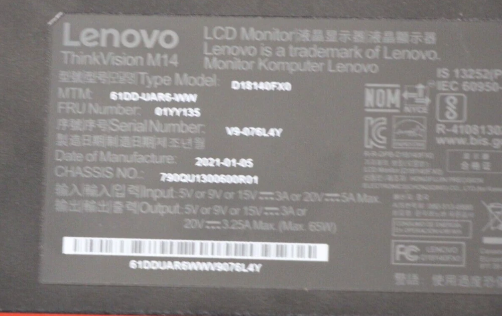 Up for sale is a Pre-Owned ThinkVision M14 Lenovo 61DDUAR6WW Portable Screen MONITOR ONLY Item is tested and working and is in good shape Has slight cigarette smell Comes AS-IS *** PLEASE NOTE ! Our store buys and sells a variety of used electronics, instruments, tools, antiques and many other items. We do our absolute best to thoroughly test all of our merchandise and accurately describe and depict any flaw or defect we find. If you come across an issue that we have overlooked, please contact us - we will be happy to work with you to resolve the issue. *** OFFICE HOURS Customer Service Hours: 9:00am - 5:00pm Monday – Friday (Closed major holidays) Have an issue with your item? Don’t worry, we’ll resolve it! Please don’t hesitate to send us a message if you have any concerns or issues with your order. We will respond as fast as possible during our business hours posted above. Note that our office is closed on Saturday and Sunday. RETURN POLICY We DO NOT accept returns. If there is a problem with your item please contact us and let us know what the problem is and we will work with you from there. We accept PayPal payments ONLY for shipped orders. If an item is paid for via PayPal, the item must be shipped. Items listed with LOCAL PICK-UP ONLY must be paid for in person upon pick-up with cash or credit at our physical store – there will be absolutely no exceptions. Ohio sales tax applies to Ohio residents. NON-PAYING BIDDERS : WE OPEN CASES IF WE DO NOT RECEIVE PAYMENT WITHIN 5 BUSINESS DAYS. We ship the majority of our items via UPS Ground, unless otherwise specified. PLEASE DO NOT PROVIDE A PO BOX ADDRESS unless we specify in the auction it will be shipped via USPS. Please provide a physical address for delivery. ALL packages with value over $250 will require signature for delivery. Item Location: A-4