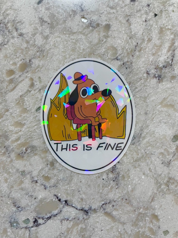 High quality waterproof This Is Fine Meme sticker perfect for pop culture lovers! These are very durable long lasting die cut stickers meaning they are versatile. They can go on laptops, phones, tablets, notebooks, tumblers, mugs, binders, and more! Available in gloss or holographic laminate and in small, medium, or large. Small - 1.1” x 1.3” Medium - 2.1” x 2.5” Large - 2.9” x 3.5” Sticker Care Instructions - Make sure to clean surface before placing sticker - Hand wash only, not dishwasher safe - Apply only to smooth surfaces - 1-3 day processing time - Shipping time is usually 1-5 days but varies due to USPS services and shipping procedures - Returns are accepted within 30 days