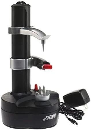 This item Starfrit Rotato Express 2.0 + 6 Replacement Blades | Updated Black Product Details Brand: Starfrit Recommended Uses For Product: Fruit, Vegetable Color: Black Specific Uses For Product: Fruit, Vegetable Special Feature: Durable Product Dimensions: 5.5"L x 5.5"W Blade Material: Acrylonitrile butadiene styrene Model Name: 060288 Power Source: Battery Powered, Corded Electric Operation Mode: Automatic Material: Stainless Steel Style: Electric Item Weight: 0.88 Kilograms Number of Blades: 2 Manufacturer: Starfrit Item Weight: 1.94 pounds Country of Origin: China Item model number: 060288 Is Discontinued By Manufacturer: No Includes: (1) Rotato Express 2.0 (6) Replacement Blades[2 bonus under the battery + 4 bonus in a extra pack.] (1) Thumb Knife & (1) 6V Adapter Peels A Variety Of Fruits Or Vegetables Of Various Shapes And Textures With The Press of A Button Simply Fasten The Produce On The Bottom Holder, Lower The Upper Holder Onto The Food, And Press The Red Button For Super-Fast, Effective Results Operates With A 6V Adaptor Included And Can Also Function With 4 AA Batteries (not included) - Cord Length Measures 31" L