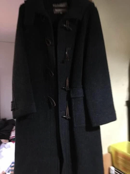 Thomas Burberry Duffel Coat Long Coat Wool Dark Gray Check Men Size M Used