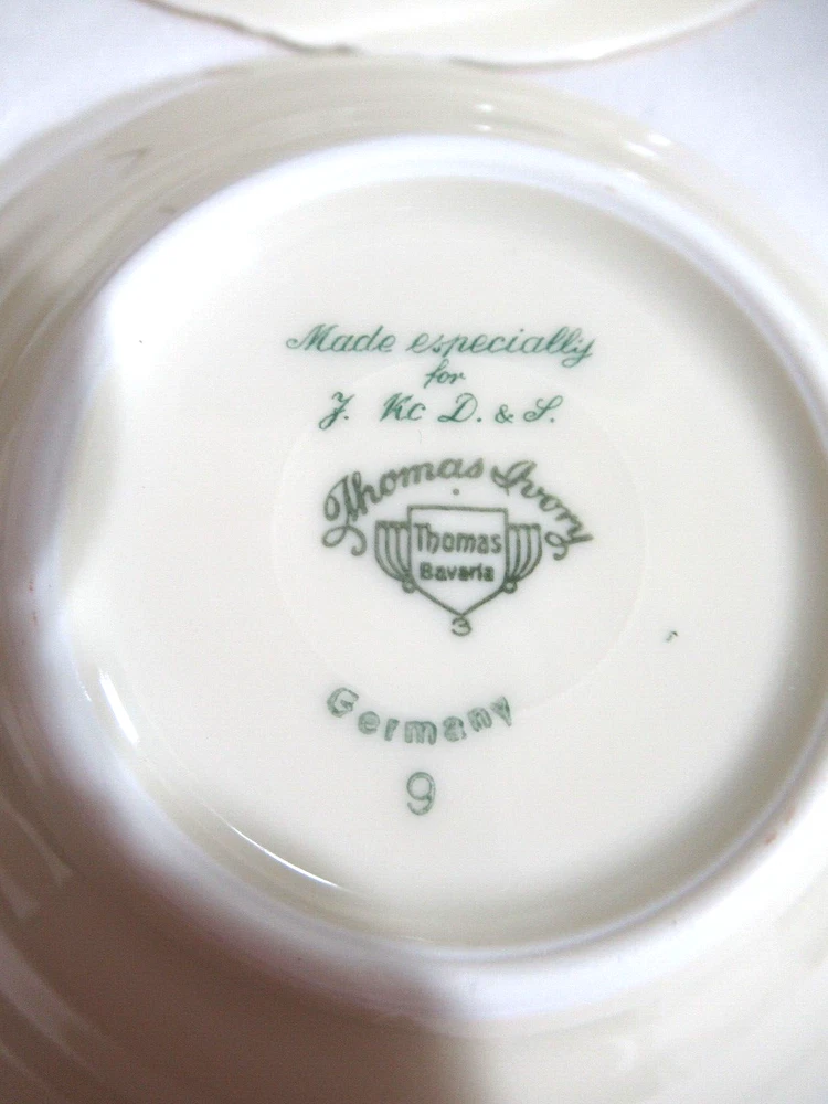Thomas Ivory Floral Print Porcelain Ivory Color 6" Dessert Plates & Fruit Bowls Set of 19 Total Plates and Bowls 9 Total sets and 1 extra Bowl They are in Excellent Preowned Condition - See Picture 9 The plates measure 6" In Diameter the bowls measure 5" in Diameter and 1 3/4" Deep I don't Sell Knock offs or imitations ** I am in no way associated with this brand, therefore any assumed or implied guarantees, warranty and or return policy, associated with this brand are not covered. If you do have any issues or concerns please feel free to contact me. ** Attention VeRO members: I am not affiliated or endorsed by the companies mentioned in this listing. All trademarks and copyrights are acknowledged, they are only used for informative description of the items offered for sale. All items are authentic as evidenced in photos, legally acquired and owned, and hence covered under First Sale Doctrine. Warning. Everything sold into the state of California contains agents known to the state of California to cause cancer and birth defects, reproductive harm, or other, as yet unnamed, harm to its citizenry. I TRY MY BEST TO LIST EVERY ITEM AS ACCURATELY AS POSSIBLE, HOWEVER, I AM ONLY HUMAN AND SOMETIMES MISTAKES ARE MADE. I AM A VERY FAIR AND HONEST SELLER AND MY FEEDBACK AND EBAY REPUTATION ARE VERY IMPORTANT TO ME. I ASK THAT IF YOU HAVE A PROBLEM WITH YOUR PURCHASE PLEASE COME TO ME PRIOR TO LEAVING ANY TYPE OF FEEDBACK FIRST SO WE CAN WORK IT OUT