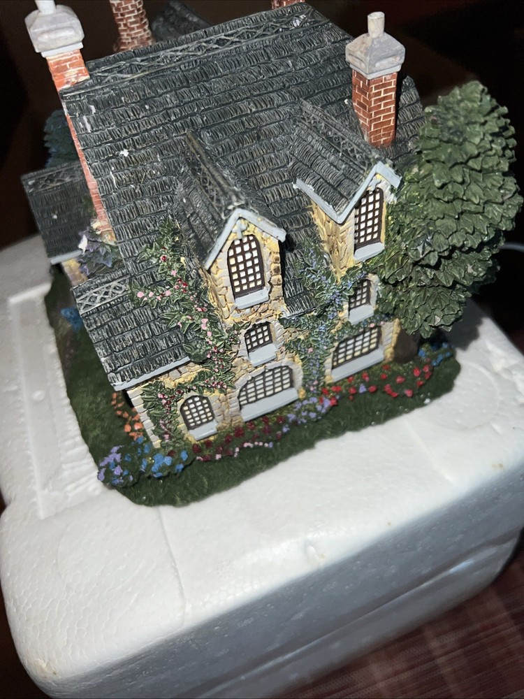 The Thomas Kincaid Hawthorne Village Spring Gate Manor is a beautifully handcrafted resin house from the Classic Collection. Featuring artwork by Thomas Kinkade, this piece captures the essence of spring with intricate details and a charming design. Perfect for collectors or as a sentimental gift for a special occasion, this unique village house adds a touch of nostalgia and elegance to any holiday or seasonal display.