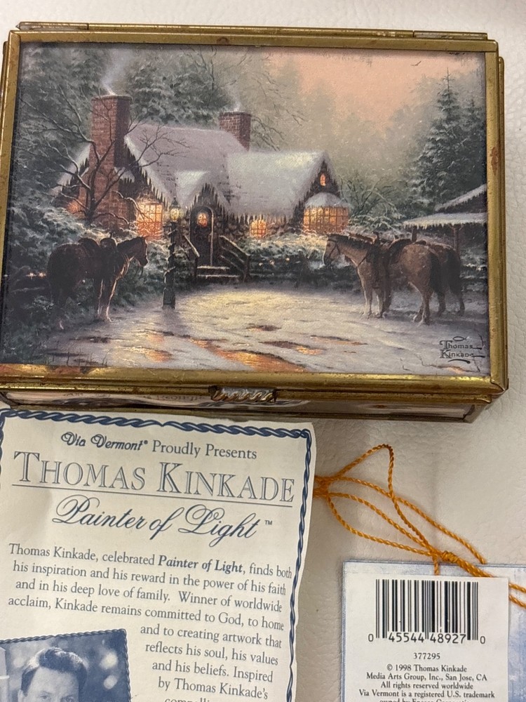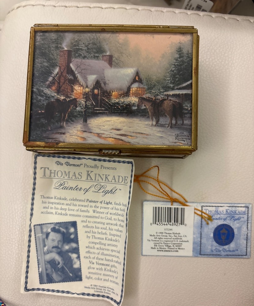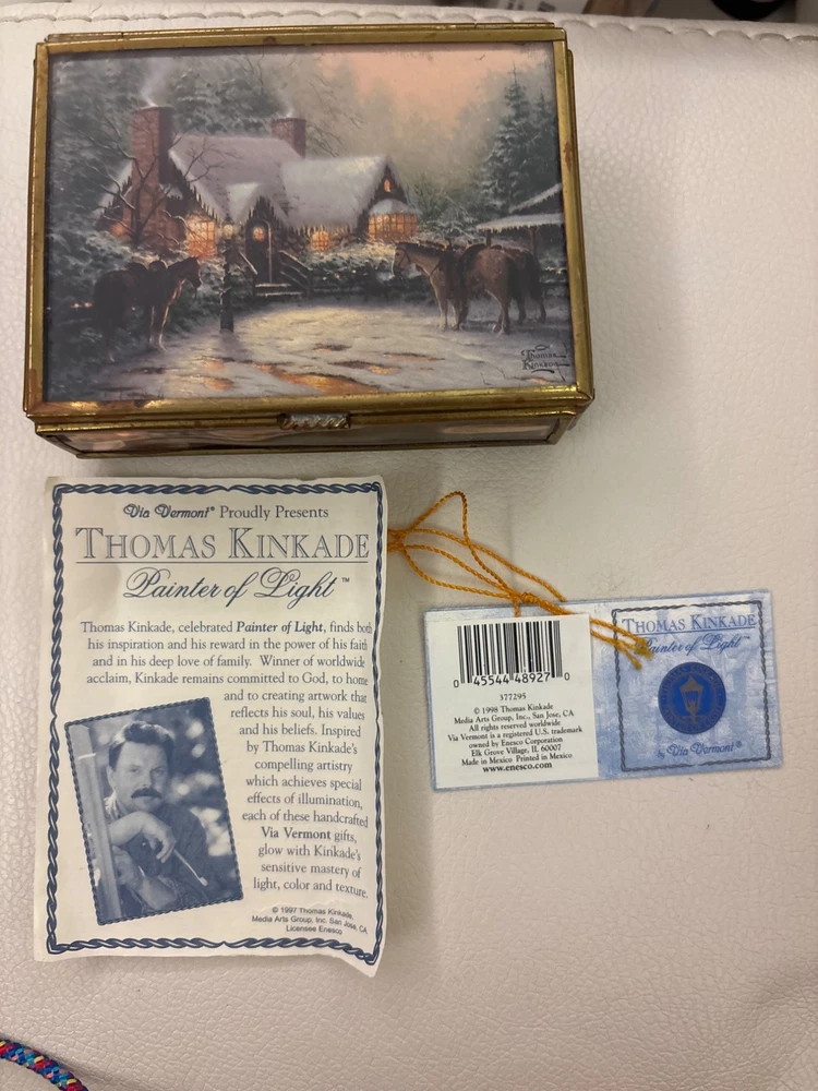 Thomas Kinkade Mirrored Trinket Box by Enesco, A charming collectible perfect for holiday decor or gift-giving. Features intricate designs and comes with original paperwork. No Flaws and simply beuatiful • Exquisite craftsmanship • Mirrored surfaces • Original paperwork included • Perfect for Christmas decor • Collectible item • Elegant design Aged on the outside but still looks great Please see all photos as they are part of the description. Always open to reasonable offers! Jewelry is never cleaned as we want to preserve its timeless beauty and aging. Vintage items tell a story and we would like you to see that story. It also allows the new owners to clean in a way that is right for them.