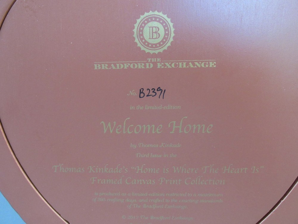 Box: No Size / Measurements: See Full Description Seller Notes: “Like new condition. No chips or cracks. White spots are glare from lights.” Issue Number: Third Bradex Number: 01-12016-003 Dated: 2012 Numbered: B2391 Collection: Thomas Kinkade's "Home is Where the Heart Is" Framed Canvas Print Combine Shipping: Yes Color: Multi-Color Brand: The Bradford Exchange