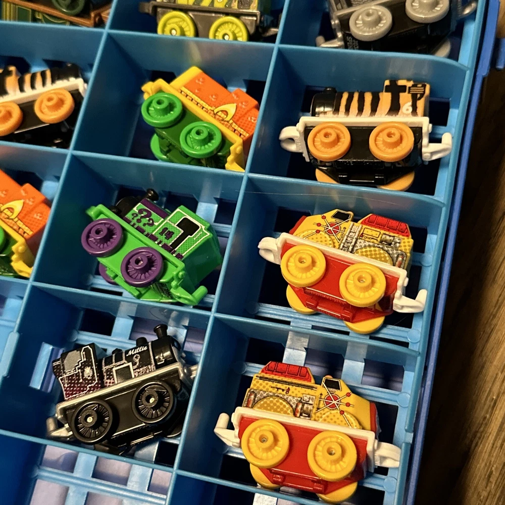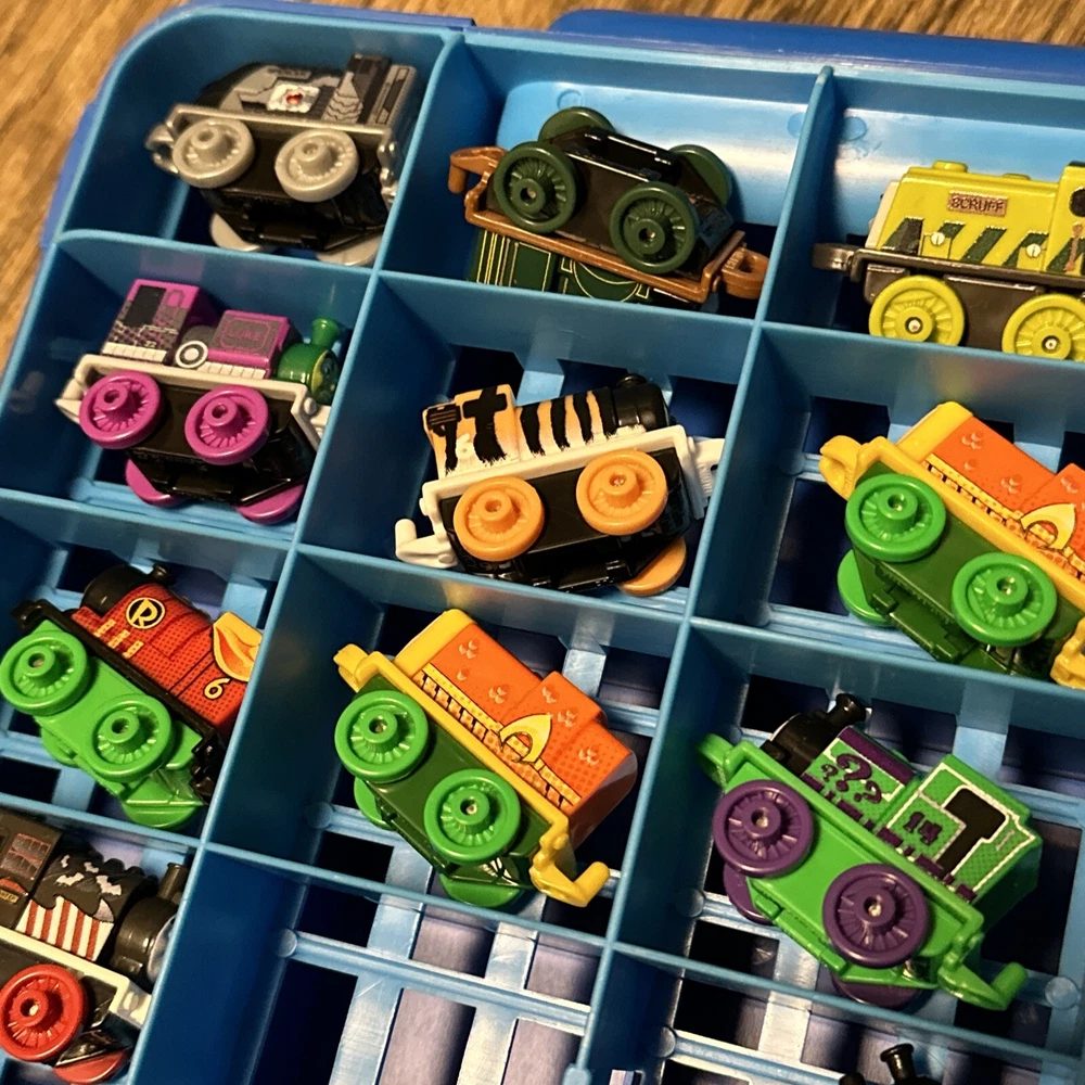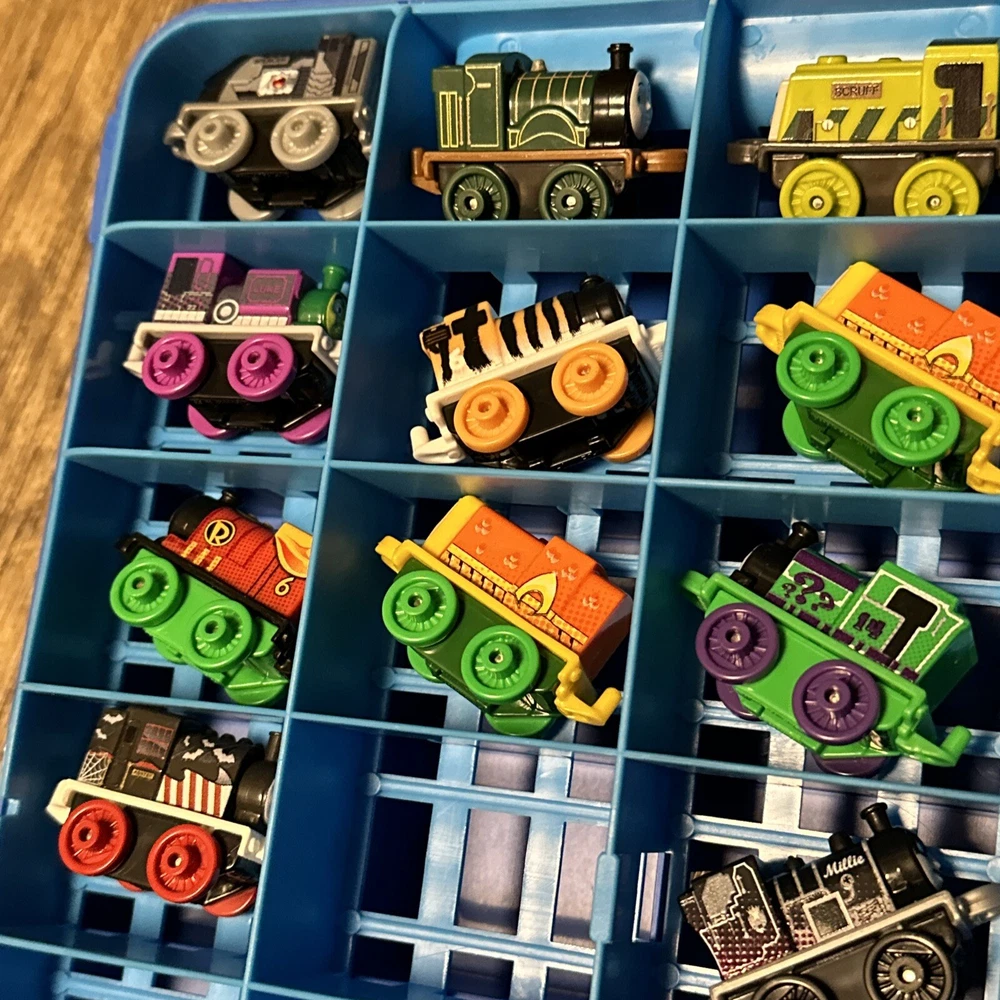 This lot includes 15 mini trains from the Thomas & Friends franchise, along with a carrying case. These action figures are perfect for collectors or children who love to play with toy trains. The brand is known for its high-quality toys and attention to detail, making this lot a great addition to any collection. The vehicles are all in great shape and ready for display or play. Don't miss out on the chance to own these charming mini trains and their carrying case.