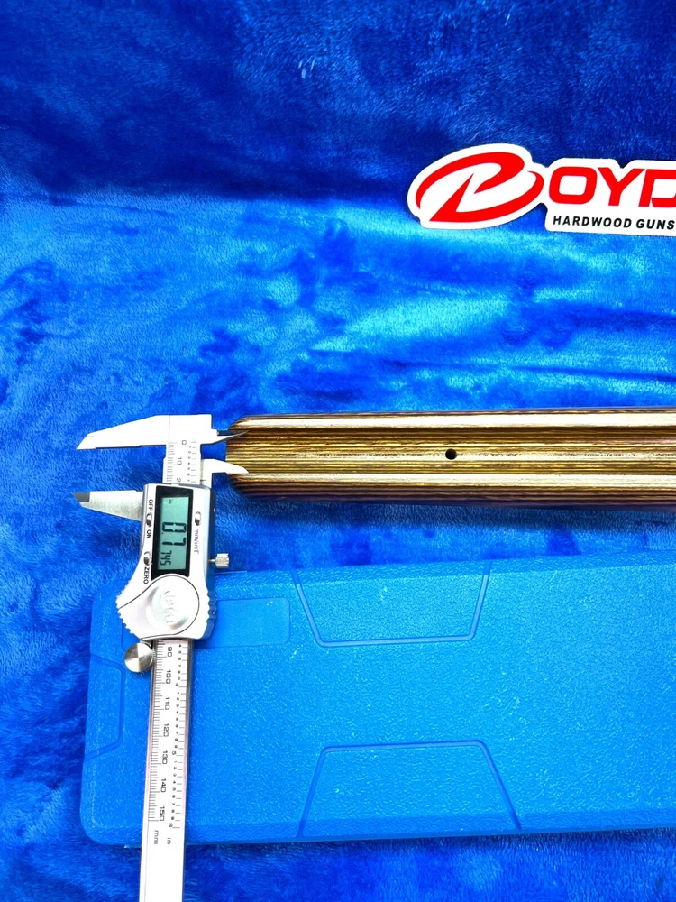 Boyds Nutmeg Encore Rifle Forend with fasteners Enhance your Thompson Center Encore Rifle with this Nutmeg colored Hardwood forend grip. This durable grip is made from laminated hardwood materials and measures 10 inches in length. It comes with a sling attachment stud, ensuring a more comfortable and hassle-free hunting experience. This forend grip is suitable for Encore rifles and is available in Nutmeg color. It is "brand new" and comes with black oxide fasteners. The grip is made in the United States, and it is a part of the hunting and sporting goods categories. Get your hands on this high-quality forend grip for your Thompson Center Encore rifle today! Calipers and their case are not included.