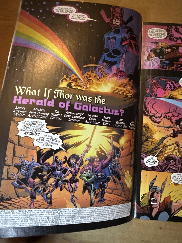 This is a rare and collectible comic book titled "What If Thor Was The Herald of Galactus?" published by Marvel Comics in 2006. The comic book is a first printing, one-shot issue and features the Avengers superhero team in the Modern Age (1992-Now) era of the Marvel Universe. The story is written by Robert Kirkman and the cover art is by Michael Avon Oeming. The comic book is in English language, has a VF+ grade, and is boarded for added protection. It is a must-have for any comic book collector or fan of Thor and the Marvel (MCU) universe.
