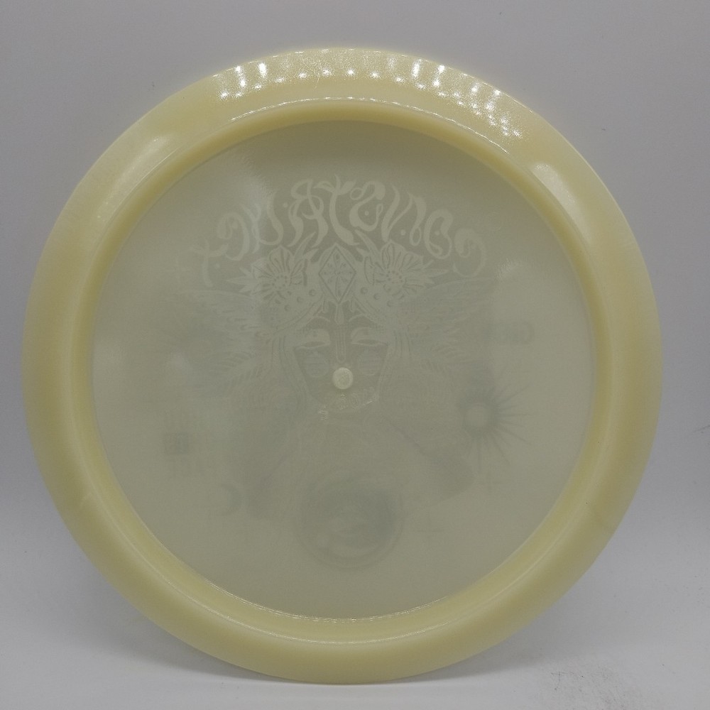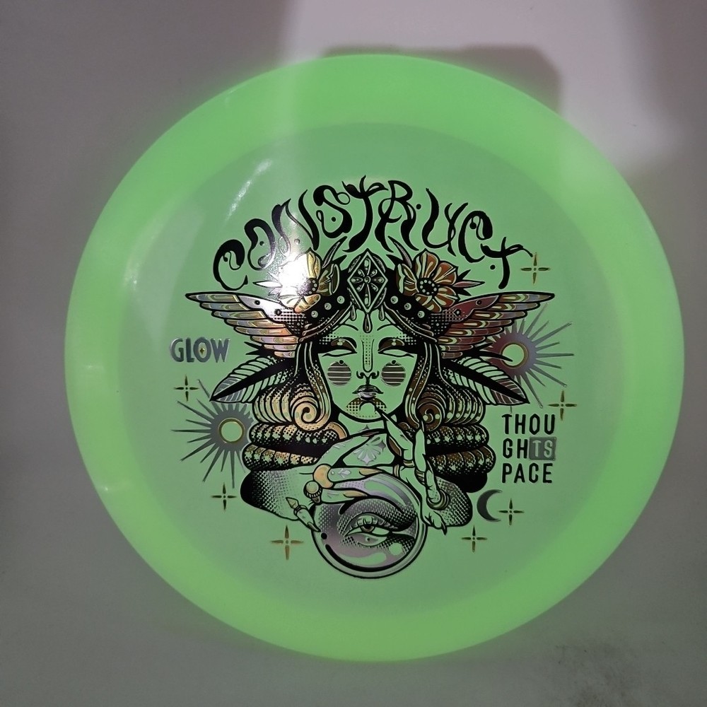 The Thought Space Athletics Soft Glow Construct Glow/Gold-Silver 170g disc is a premium plastic distance driver designed for disc golf enthusiasts. With a speed rating of 10 and a glide rating of 6, this special edition disc features a unique glow design that not only looks attractive but also enhances visibility in low-light conditions. Weighing 170 grams, this disc offers a balanced feel and is ideal for players looking to achieve long distances with each throw. The soft glow construct disc is a valuable addition to any disc golfer's collection, offering both aesthetics and performance.