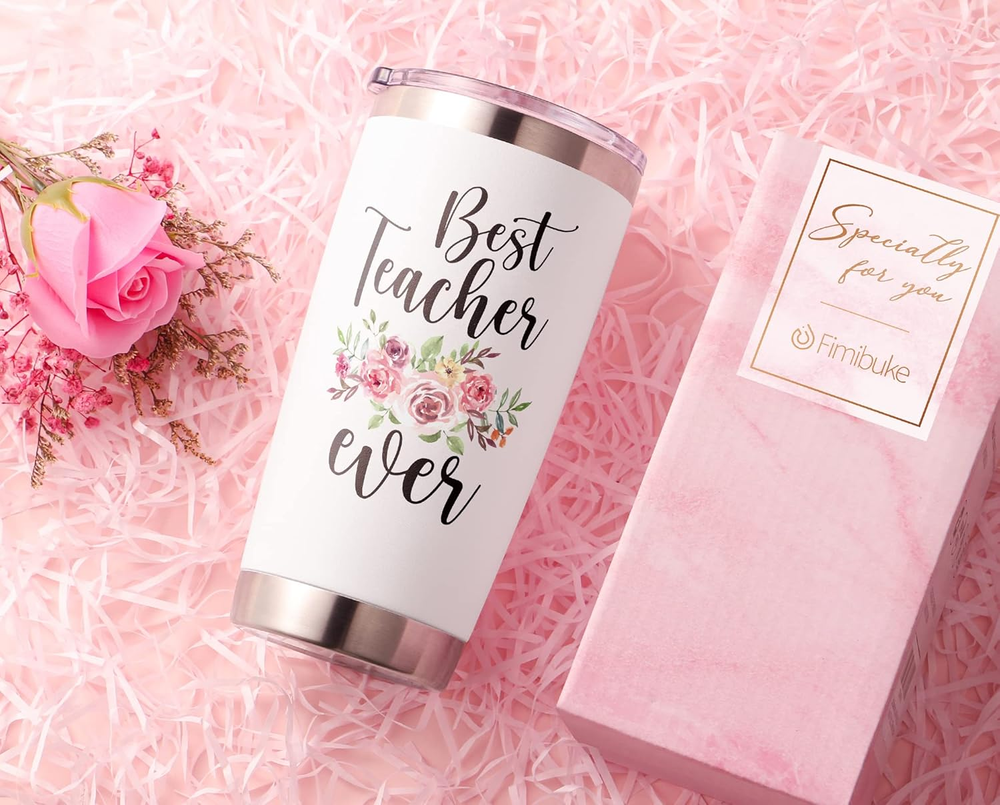 Store New Arrivals Add to Favorite View Feedback Contact Gifts for Teacher from Students, 20 Oz Tumbler Christmas Gifts for Teacher Appreciation Teacher Gifts Insulated Cup Unique Boxed Present for Birthday Thanksgiving Gifts Tumbler for Teacher Description Style Best Teacher Ever Number of Items 1 Pattern Letter Print Country of Origin China Theme Funny Material Stainless Steel, Silicone Capacity 1.3 Pounds Unit Count 1 Count Product Dimensions 3"W x 7"H Age Range (Description) Adult Finish Type Powder Coated Specific Uses For Product Cold Drinks, Hot Drinks Included Components Lid, Straw Reusability Reusable League ncaa Item Weight 12.6 ounces Material Feature Insulated Occasion Christmas、ThanksgivingTeacher、 Appreciation Week、Valentines Day、Birthday Special Feature Dishwasher Safe Color Pink Shape Cylinder Recommended Uses For Product Home,Travel, Camping Material Type Free BPA Free Product Care Instructions Machine Wash, Hand Wash Only PERFECT GIFT FOR THE BELOVED ONE: This gift tumbler for teachers with sayings:"Best Teacher Ever" are great gifts for Christmas, Thanksgiving, Teacher's Day, Teacher Appreciation, Birthday, making them smile with every sip! In addition, packed in a gift box, these tumblers possess great performance in keeping their beverage cold or warm while decorated with beautiful and funny prints. Show teachers your care with this thoughtful Christmas gifts that will make their lives easier and more fun SAFE & PREMIUM MATERIAL: Fimibuke 20oz tumbler with lid is made of premium 18/8 stainless steel, fully resistant to oxidation and corrosion. This stainless steel cups comprise BPA-FREE, food-safe and recyclable material. These Christmas gifts travel cups are not dishwasher safe, handwashing is highly recommended. These insulated cups are perfect to enjoy drinks at occasions such as home, office, beach, camping, picnic. This gift cup set includes 1 gift tumbler 20oz, 1 leak proof lid, 1 gift box DOUBLE WALLED VACUUM INSULATED: With double-walled vacuum insulation, these insulated cups can preserve beverage temperature up to 24 hours for cold and 12 hours for hot. In addition, the double walled design and powder coated finish make the bottle sweat-free. Also, the top mouth is wide enough for refilling and inserting ice cubes or fruits. This cup is designed to preserve the quality and temperature of beverage such as coffee, iced fruit teas, wine, champagne, smoothies, sodas, milkshake LEAKPROOF SLIDING LIDS: With this Christmas gift tumbler, the seal zone technology in the lids guarantees that each stainless steel tumbler is totally leak-proof and spill-proof. These BPA-FREE lid are designed with a slider on the top for easier using. You can not only drink from the hole on the top for sipping, but also put your own straw in this straw friendly cups to enjoy smooth drinking. You can confidently take these leak proof insulated cups with lid around without any worries of spills IDEAL GIFT GIVING & : A great Christmas gift for your lovely teachers or someone who helped you. Just choose these cups with beautiful and funny prints and keep your beloved ones beverages quality and fresh. Fimibuke premium stainless steel tumbler is great for Teacher's Day, Christmas, Thanksgiving, Teacher Appreciation, Teacher Birthday. Our Team offers superior customer service, high-quality material, and a life-time warranty. Any questions, send us your issues for solution OFFER GIFT WRAP/MESSAGE OPTIONS: PLEASE ADD YOUR PERSONALIZED MESSAGE OR CHOOSE WRAP IN GIFT BAG BY CHECKING "Add gift options at checkout" Product Description Christmas Teacher Appreciation Gifts Teachers devote themselves to doing incredible work in education. They're smart, funny, caring, hardworking, and exciting. Not only have they created lessons to help students learn lots of knowledge, they have also taught students to be a better man. Teacher's love has shaped us to be well-educated and knowledgeable and deserves the sincere appreciation. Show out your special love for your teacher by surprising her/him with a beautiful and functional gifts and bless dear teacher with happy and prosperous life. Fimibuke 20oz gift tumblers for teacher are not only designed with funny sayings and packed in a beautiful gift box, but also possess great performance in keeping their beverage cold or warm, making her/him smile with happiness and love. ABOUT FIMIBUKE Fimibuke is devoted to creating more premium gift tumblers to be a great choice with beautiful designs and functions as gifts for teachers. Great for Teacher's Day, Graduation, Birthday, Christmas, Thanksgiving etc. Note: 1. These tumblers are not dishwasher safe, Hand wash only. 2. DO NOT put the stainless steel cups in the microwave. 3. DO NOT wash it with strong detergents. WHY CHOOSE US? Great Gift Choice: Packed in a beautiful gift box and designed with beautiful and funny prints, Fimibuke 20oz gift tumbler is a great choice to show out your sincerity and caring as Christmas teacher gifts. Safe & Premium: Made of premium food-grade 18/8 stainless steel and BPA-FREE plastic, all are food-safe and recyclable. Double Wall Insulation: These teacher appreciation gifts can preserve beverage temperature up for a long time, fit for coffee, iced fruit teas, wine, champagne etc. 18/8 Stainless Steel Double Wall Insulation Gift Box Package Reusable & Durable Sweat-free & Leakproof Fimibuke 20oz Gift Tumbler Set - Christmas Gifts for Teachers GIFT BOX PACKAGE Designed with a beautiful gift box, this 20oz tumbler set is a great gift choice for teacher. EASY TO USE These cups are perfect to enjoy drinks at occasions such as home, camping, picnic. FIT FOR CAR HOLDER This cup is designed to fit for car holder perfectly. Easy to drink on car without mess. Multifunctional 20oz Gift Tumbler Christmas Gifts for Teacher Versatile Gift Ideas Perfect Gifts for teachers from students on Teacher's Day, Christmas, Birthday, Thanksgiving, Graduation, New Year and other various festivals. Teac