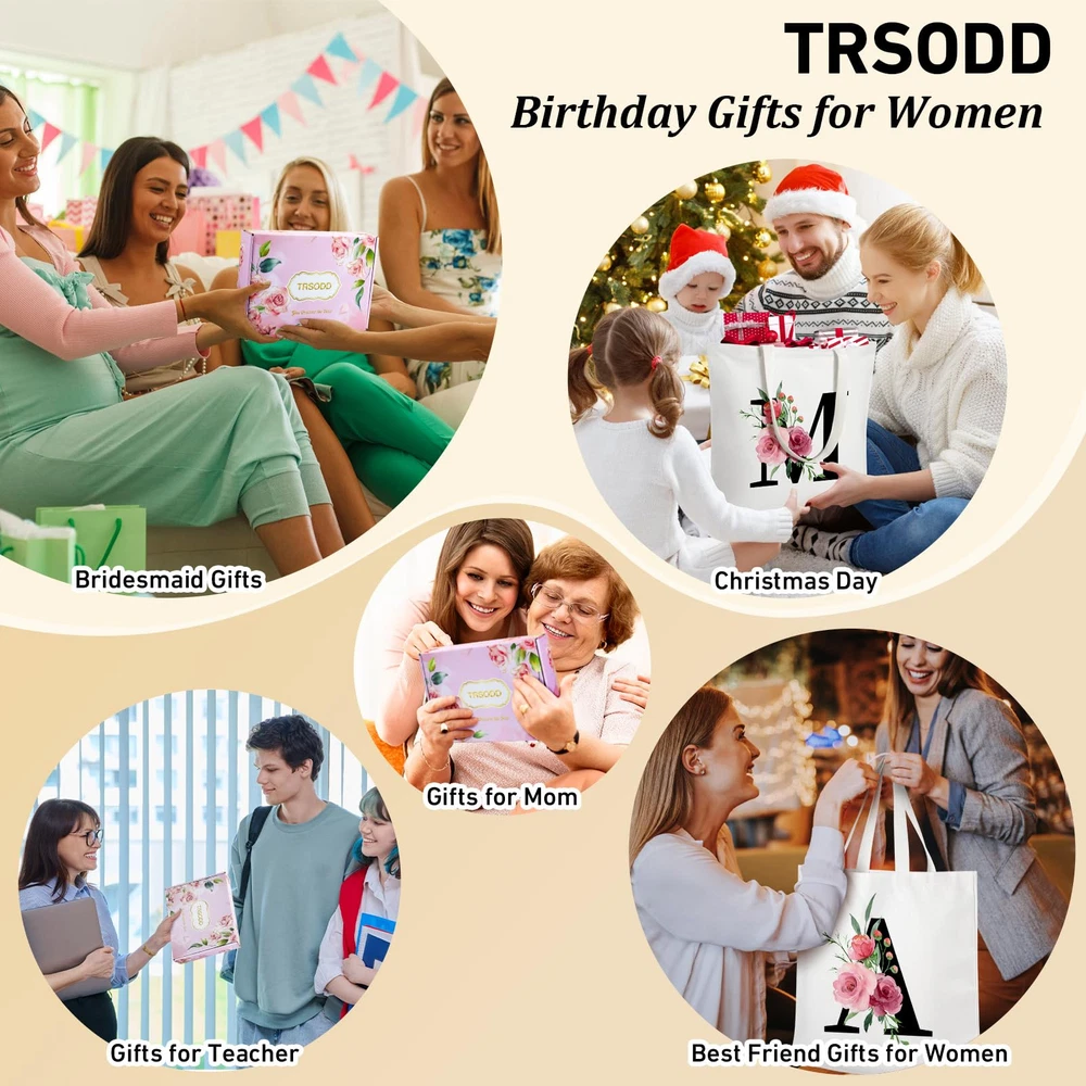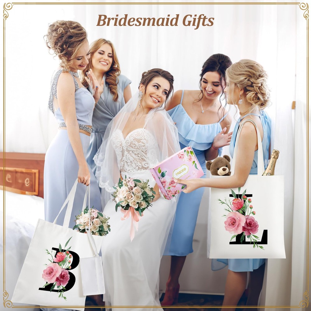 Sweet Perfect Gift Set: The thoughtful and exquisite gift set includes 1 uti-lity tote bag, 1 makeup bag, 1 exquisite gift box, 1 blessing card, both the gift box and the blessing card are made of high-quality materials, very beautiful. Interwoven mono-gram tote bags for bride, bride-to-be and bridesmaids at Bachelorette Party, Wedding Party, Bridal Shower Party, Engagement, Honeymoon. Christmas Gifts, Valentines day gifts, best friend gifts for women, Teacher's Day Gift, Thanksgiving Gifts. Inside Pocket, Cosmetic Bag and Front Pocket:The size of can-vas tote bag for women measures 17" x 11.8" x 7.8", personalized tote bags for easy portability or shoulder carry. Closeable 1x inner pocket, 1x large make-up bag for small items such as bank cards, keys, air mattress, sunscreen and tissues. The paneled canvas front pocket of work bags for women is perfect for storing magazines, flip flops, tablet, so that your items can be seen at a glance, you don't have to worry about finding them. Exquisite Colour Printing and Clever Design: Each character on the weekender travel bag is printed using a special technique that will not fade or distort. Exquisite and durable, your heart will never fade.Personalized tote bags are designed with a small pouch that can be closed, so that you can easily access and store small items such as mobile phones, bank cards, keys. The bottom of bag features upgraded reinforcement technology to better support the item and enhance the durability of the bag. Multiple Occasions and Versatility: First, place heavy, flat items like books and magazines on the bottom of the beach bag. Then, place your towels, clothes, shoes, pouches, etc. and follow with snacks and drinks. Finally, add sunglasses, sunscreen, swim goggles. At the same time, it can be used in many occasions, such as outdoor beach tote bag, cross body bag, reusable grocery bags, laptop bag, gym bag, weekender travel bag, travel cloth tote bag, thank you bags, overnight bag, gym bag. Matching, After-sales Service: The mono-gram tote bags are very versatile, the personalized tote bags can be matched with T-shirts, shirts, shorts, short skirts, long skirts, leggings, jeans, duffle shoes, sandals, sports shoes, sun hats, sunglasses, etc. 21" long handle for comfortable carrying or shoulder, and can be worn to suit your style. If you have any questions about our gifts bag , please feel free to contact us.