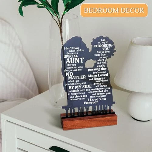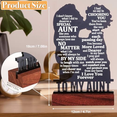 Return Policy Fast Delivery Trusted seller Christmas Gifts for Aunt, Valentines Day Gift for Aunt, Aunt Gifts from Nephew, Best Aunt Ever Gifts, Birthday Gifts for Aunt, Auntie Gift Ideas, Aunt Mother's Day Gifts, Aunt Gifts for Christmas Product Description Perfect Aunt Gifts from Nephew: Searching for the ideal aunt birthday gifts or birthday gifts for aunt? This heartfelt piece is an excellent choice. It beautifully captures the essence of the special bond between a nephew and his aunt. Made with love and care, this gift will remind her how special she is and how much she is cherished. It’s also one of the best aunt ever gifts that will show your appreciation and love. Best Aunt Ever Gifts for Any Occasion: Whether it's for her birthday, Mother's Day, or Christmas, this is among the top auntie gift ideas you can find. Show your aunt that she is always in your thoughts with a unique and meaningful gift. Crafted to perfection, it is a wonderful way to express your feelings. This gift is not just for birthdays but also makes for wonderful aunt mothers day gifts and Christmas gifts for aunt. Thoughtful Aunt Birthday Gifts: Make her day extra special with one of the most thoughtful birthday gifts for aunt. This gift is a lovely reminder of how much she means to you. It’s perfect for any occasion, be it her birthday or just a day you want to make her feel special. Celebrate the bond you share with a gift that speaks volumes. Aunt Gifts for Christmas: As the holiday season approaches, finding the right Christmas gifts for aunt becomes a priority. This beautiful piece is one of the best aunt gifts for Christmas that she will treasure. It’s a touching way to let her know how much you love and appreciate her. This gift is sure to bring a smile to her face and warmth to her heart. Unique Auntie Gift Ideas: Struggling to find unique and meaningful auntie gift ideas? Look no further. This gift combines elegance and sentiment, making it a standout choice among gifts for aunts from nephew. It’s a versatile gift that fits any occasion, whether it's a birthday, Mother's Day, or Christmas. Show your aunt how much she means to you with this exquisite piece. Shipping Returns Payment Shipping Shipping is FREE to all addresses other than APO/PO boxes in the lower 48 states. All our stock ships from US-based warehouses. Shipped via USPS or UPS (depending on location and package weight) Unless stated otherwise, all orders will ship within 24-72 hours of your payment being processed. Check our feedback to see the great reviews of FAST shipping we offer. Returns Seller does not accept returns Payment We currently accept payment via eBay managed payments only. Once payment is cleared, we will dispatch your shipment within 1-3 business days. Please refer to the "Shipping" tab for more information regarding shipping speed to your destination.