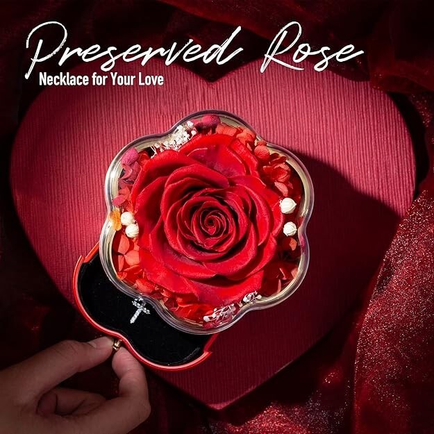 Gifts for Wife Women Wife Gifts for Her Christmas Girlfriend Gifts Birthday Gift Description 925 Sterling Silver Necklace & Pendant: Made from high-quality 925 sterling silver with a 18K rose gold-plated surface, this 17-inch necklace ensures durability and shine. The cross pendant measures 0.4 x 0.6 inches (2/5 x 3/5 inches) and is adorned with 12 synthetic diamonds. This piece is not just an accessory—it expresses deep emotions and celebrates special moments. Premium Quality and Comfort: Say goodbye to the irritation caused by stainless steel or copper necklaces. Our premium quality necklace, crafted from pure silver and delicately plated with 18K gold, offers a luxurious and gentle alternative for sensitive skin. Designed with your comfort in mind, it's nickel-free and ensures a lasting shine without fading. Embrace elegance without compromising on skin health. Elegant Presentation: Our necklace comes in a beautifully designed, high-quality gift box adorned with a red eternal rose. This exquisite packaging not only protects your jewelry but also adds a touch of sophistication, making it a perfect gift that delights and impresses from the moment it is received. A precious gift suitable for various remarkablewomen in your life, be it your mother, grandmother, wife, fiancée, girlfriend,or any cherished individual. Whether celebrating a birthday, Mother's Day, orany moment to express deep affection, a preserved roses and an exquisite necklace conveys profound emotions. It's not merely a gift; it's a beautiful sentimentexpressing genuine feelings, creating a timeless token of love for anyonespecial in your life. TRANSFORM an exquisite necklace gift box adorned with an everlasting rose into a magically enchanting present for various special occasions throughout the year, including Mother's Day, Valentine's Day, Birthday, Anniversary, Thanksgiving, and Christmas. Bring warmth and surprise to the women in your life with this unique combination of preserved flowers and a Cross necklace.