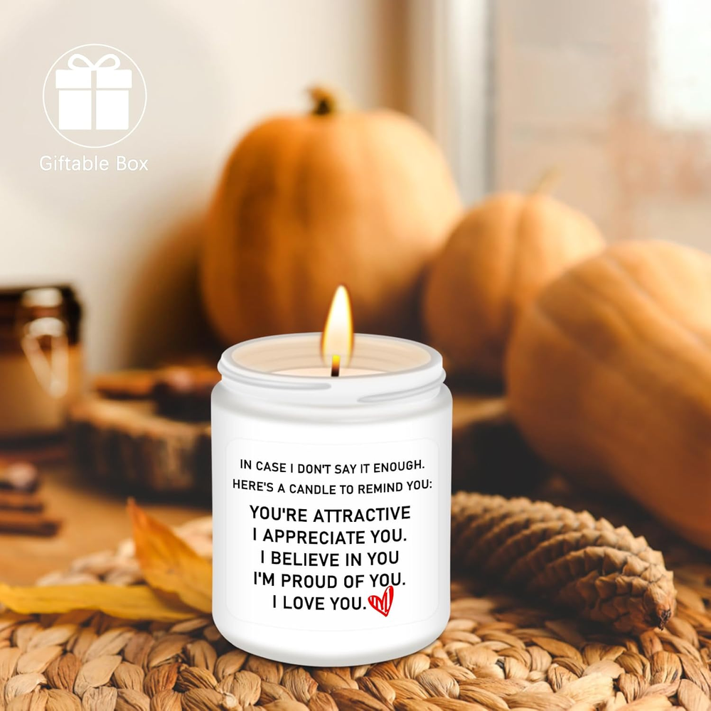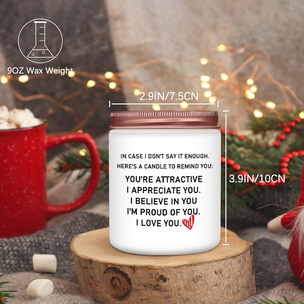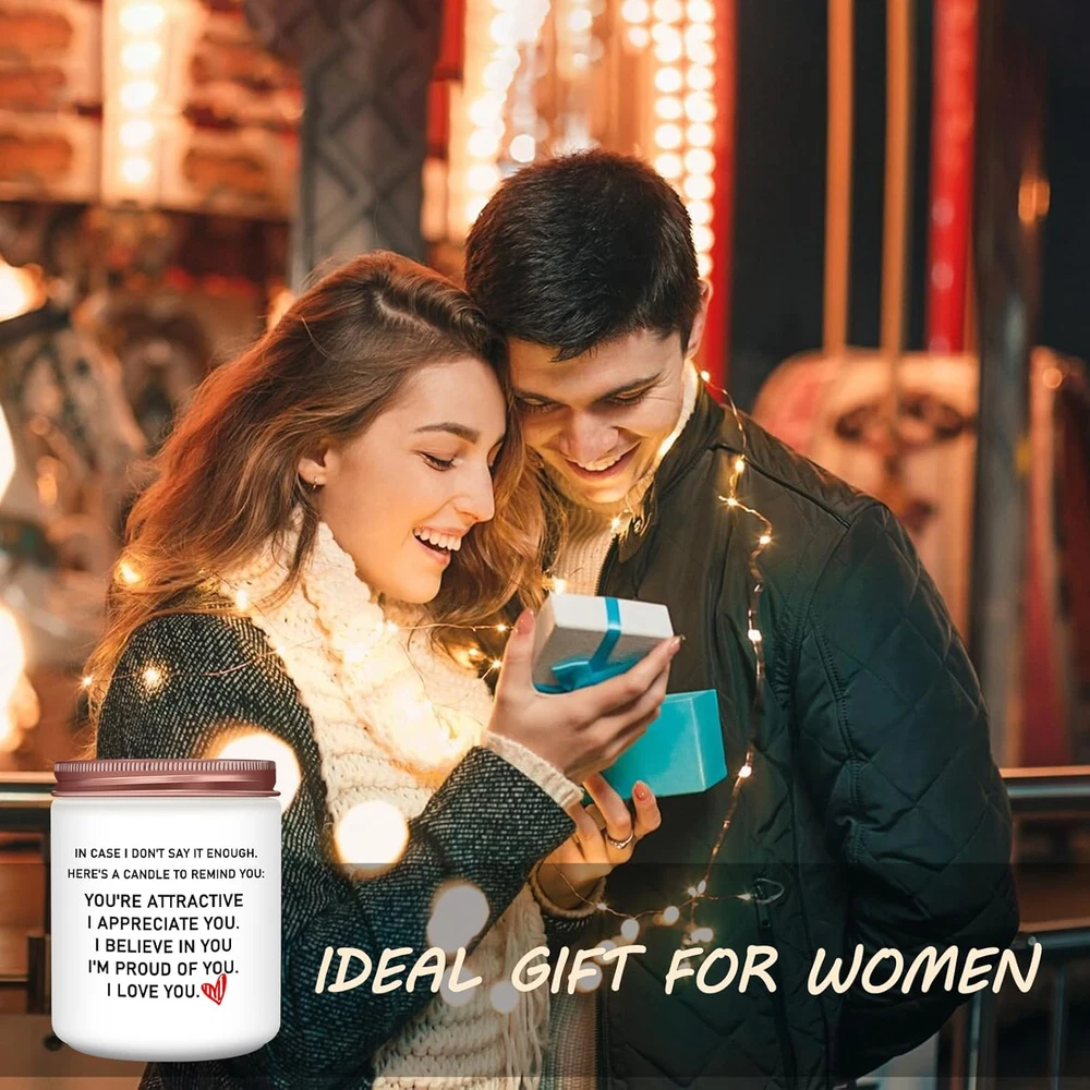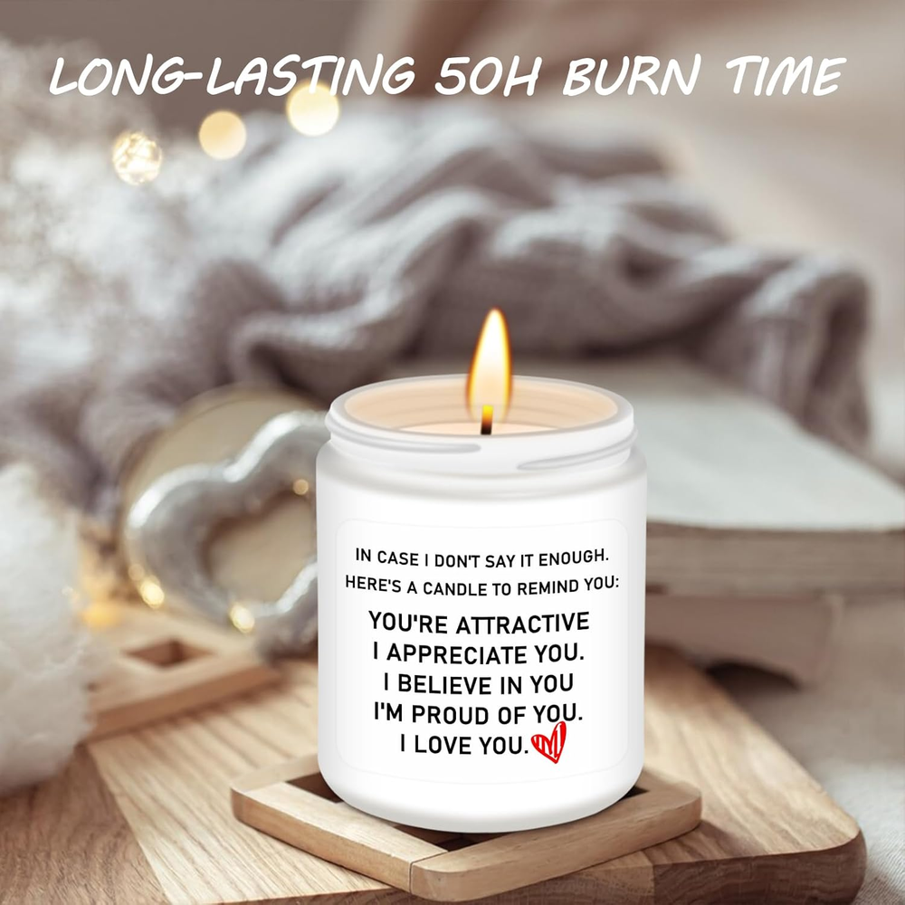 Store New Arrivals Add to Favorite View Feedback Contact GiftByRebecca has been in the US market for over 2 years and offers free delivery to the customer's home with professional customer service Gifts for Her,Ideal Birthday Women Gifts,Romantic Valentines Day Gifts for Her,Girlfriend,Anniversary Wedding Gifts for Wife - Lavender Scented Candle Description Excellent Choice for Gifts for Her: Homsolver's scented candle has an interesting language: "IN CASE I DON'T SAY IT ENOUGH. HERE'S A CANDLE TO REMIND YOU: YOU'RE ATTRACTIVE I APPRECIAE YOU. I BELIEVE IN YOU, I'M PROUD OF YOU, I LOVE YOU." It's the ideal birthday gift she has for everything. Romantic Gifts for Girlfriend: Whether it's for a birthday, anniversary, or Valentine's Day, this candle will surely make her day extra special. Surprise her with this elegant gift and let her know how much she means to you. Well Birthday Gifts for Women: The Homsolver Jar Candle is the delightful gift for her with its charming lavender fragrance, making it an ideal choice for gifts for girlfriends or just to show your appreciation to the special women in your life. Candles for Home Scented: This lavender candle is made from high-quality natural ingredients and adorned with beautiful jars, adding radiance to any space. Candle Scents for Candle Making: Its vanilla lavender fragrance sets a soothing and romantic mood, making it a perfect choice for anniversaries or Valentines Day gifts for her. With a burn time of approximately 50 hours, it provides long-lasting enjoyment. Product Description Homsolver Jar Candle The perfect gift for her on birthdays, anniversaries, or any special occasion. Designed with love, this cute and romantic scented candle is sure to create a magical atmosphere. Crafted with high-quality, vegan soy wax Made with 94% soy wax and 6% natural essential oil, Presented in a beautiful glass jar, this candle not only fills the room with its enchanting scent but also adds a touch of elegance to any space. With an approximate burn time of 50 hours The included lid allows for easy storage and preservation of the fragrance when not in use. Package Dimensions 4.41 x 3.78 x 3.7 inches; 15.52 ounces ABOUT US We offer the best prices around on high quality products. Our E-store includes media such as books, movies, music and games while offering electronics, toys, sporting apparel, clothing, tools, general home, garden items and more. SHIPPING We are always working hard to ensure your package arrives as soon as possible. Please understand that some factors like weather, high postal traffic, and the performance of shipping companies are outside of our control. We offer free shipping to the lower 48 states and ship within 2 business days of payment, usually sooner. We do not accept P.O. Boxes. Please provide a physical address. For shipping outside of the continental USA, we only use eBay's Global Shipping Program. The item is shipped to KY and then sent to the rest of the world. International customers are responsible for all duties and taxes. Continue to 'check out' to calculate costs for shipping the item to your country. Messages regarding eBay's Global Shipping Program MUST be directed at eBay EXCLUSIVELY. RETURNS We offer a 30-Day Return Policy on items in which you are not completely satisfied with. You have the option of a full-refund or an exchange of the item. No returns are available on items shipped outside of the USA PAYMENT We accept PayPal. CONTACT US This page content is yet to come Please ad us to your favorite seller and visit again later Thank You CUSTOMER SATISFACTION We try our very best to make sure every customer is completely satisfied. If there's a problem, message us! We're happy to help. WE ACCEPT