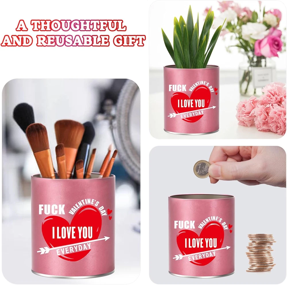 VALENTINES DAY GIFTS: This scented candle gifts with funny humorous quote,unique best gifts idea for her on Valentines Day wedding or birthday. VALENTINES GIFTS/DECOR FOR ANY OCCASIONS: Specially made scented candle gifts with rich fragrance for her,wife,she,Christmas,Valentines Day,wedding or birthday,gag gifts,anniversary gifts/decorations from him,is the great addition to the home. NATURAL WAX: Scented candle is made of quality wax,using 95% natural pure quality wax and 5% essential oil,which can provide natural health and fresh aroma for a long time. SIZE AND BURN TIME: 9 ounces and can burn for about 55-60 hours.The candle wick is lead-free and will not produce black smoke when ignited,clean the jar with hot soapy water can be recyclable. PERSONALIZED DESIGN: I LOVE YOU EVERYDAY.Funny text is printed on one side of the tin can,combined with the unique surface pattern design,unique gifts ideas for her who has everything. Product Description Valentines Day Gifts for Her Women Wife Girlfriend Specially made scented candle with rich fragrance and lovely packaging is the perfect choice for her girlfriend wife women as a Valentines Day birthday. 9 ounces and can burn for about 55-60 hours. Valentines Day decorations/decor. Great gift idea Funny text is printed on one side of the tin can,combined with the unique surface pattern design,it is perfect to express your romantic love with this canned candle as a gift. Easy to clean, just wash the jar with hot soapy water after the candle burns. The empty jar can be used for many purposes. It can be planted with small green plants or used as a container for small tools, which is very practical. Handcrafted Soy wax candles are longer lasting,made of 100% natural soy wax with essential oil and cotton lead-free wick.
