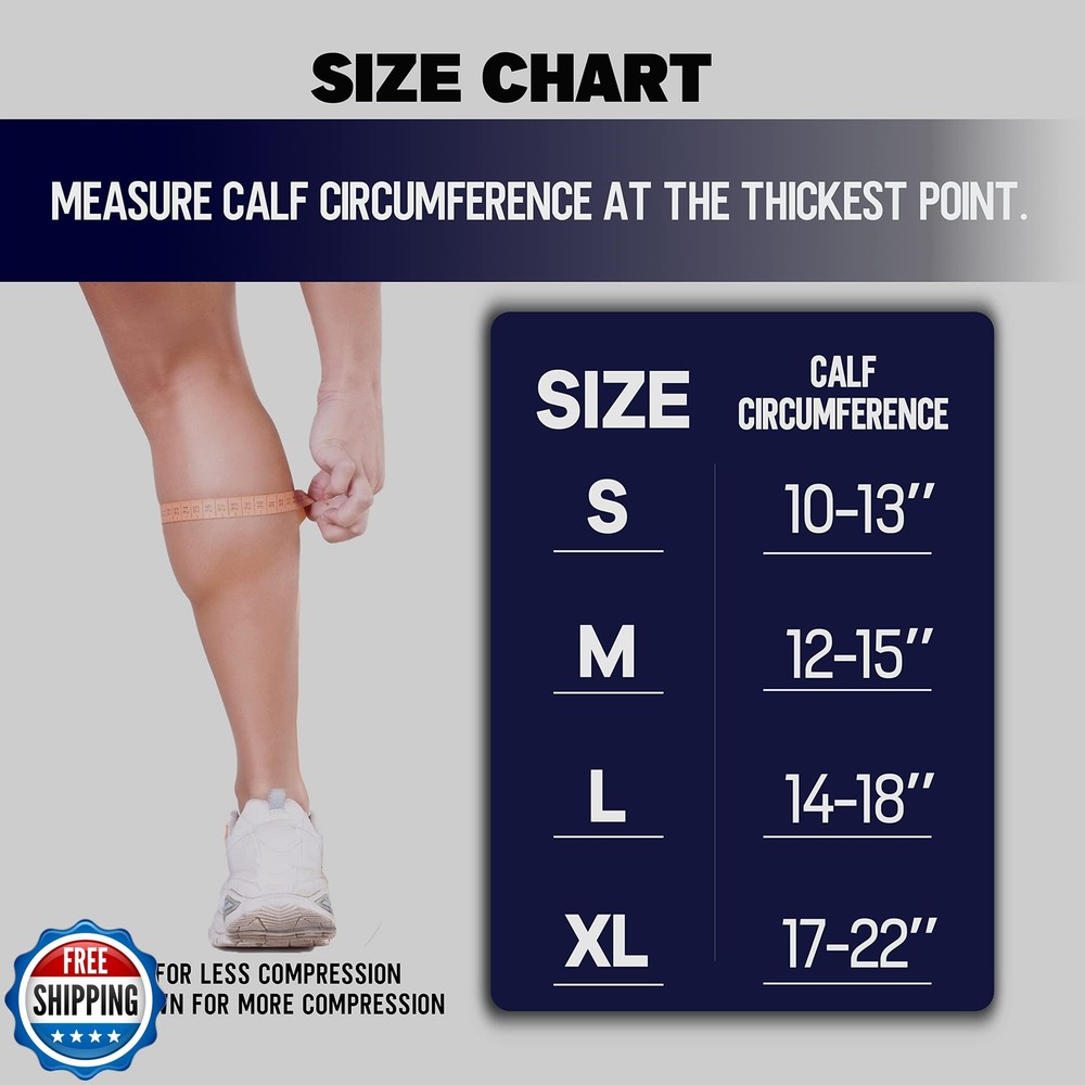 These calf compression sleeves are a game-changer! Snug yet comfortable, they provide excellent support for running and recovery. The compression feels just right—enough to improve circulation and reduce swelling without being too tight. They stay in place during workouts and help with shin splints and muscle fatigue. The black/gray design looks sleek, and the material is breathable—no sweating or slipping. Perfect for active lifestyles or anyone needing leg relief. Highly recommend!